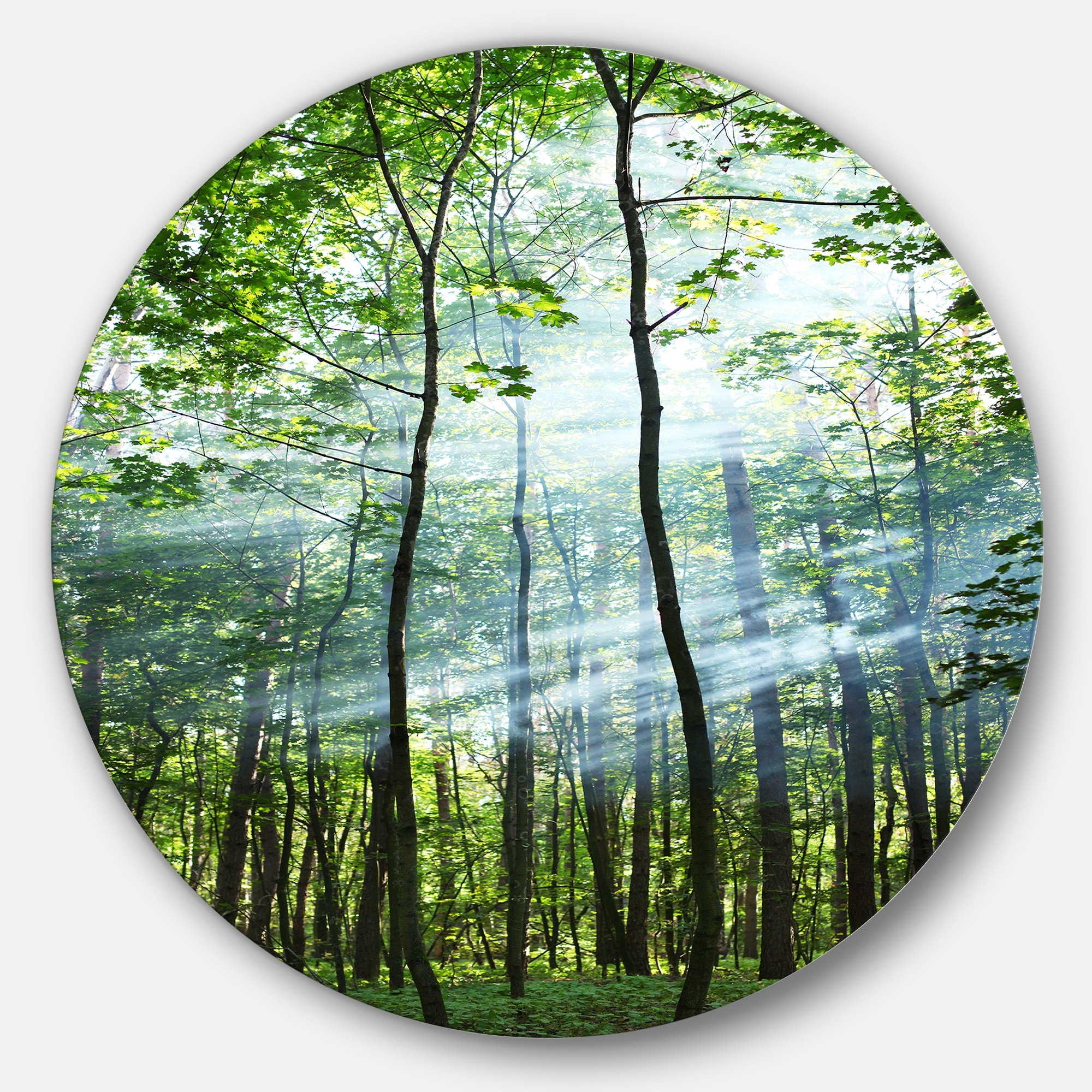 Designart 'Green Sunny Forest' Landscape Photography Large Disc Metal Wall art