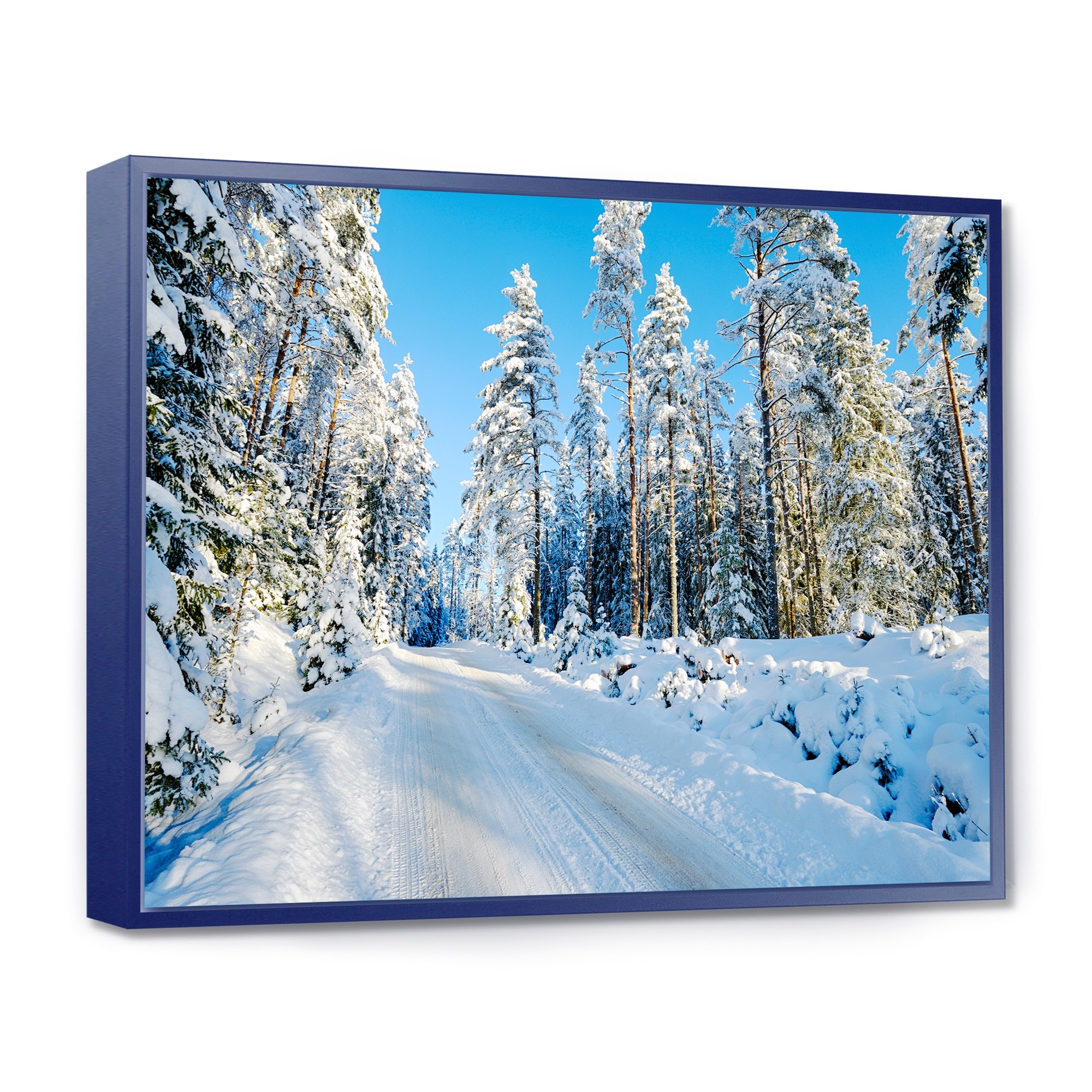 Designart "Snowy Blue Winter" Landscape Photography Framed Canvas Art Print