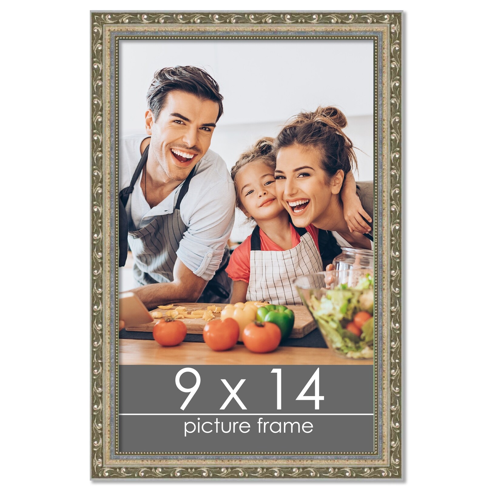9x14 Frame Silver Ornate Antique Solid Complete Wood Picture Frame with UV Acrylic, Foam Board Backing, & Hardware