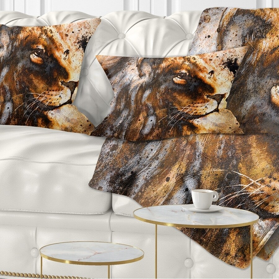 Designart 'Leopard Head with Golden Crown' Contemporary Animal Throw Pillow