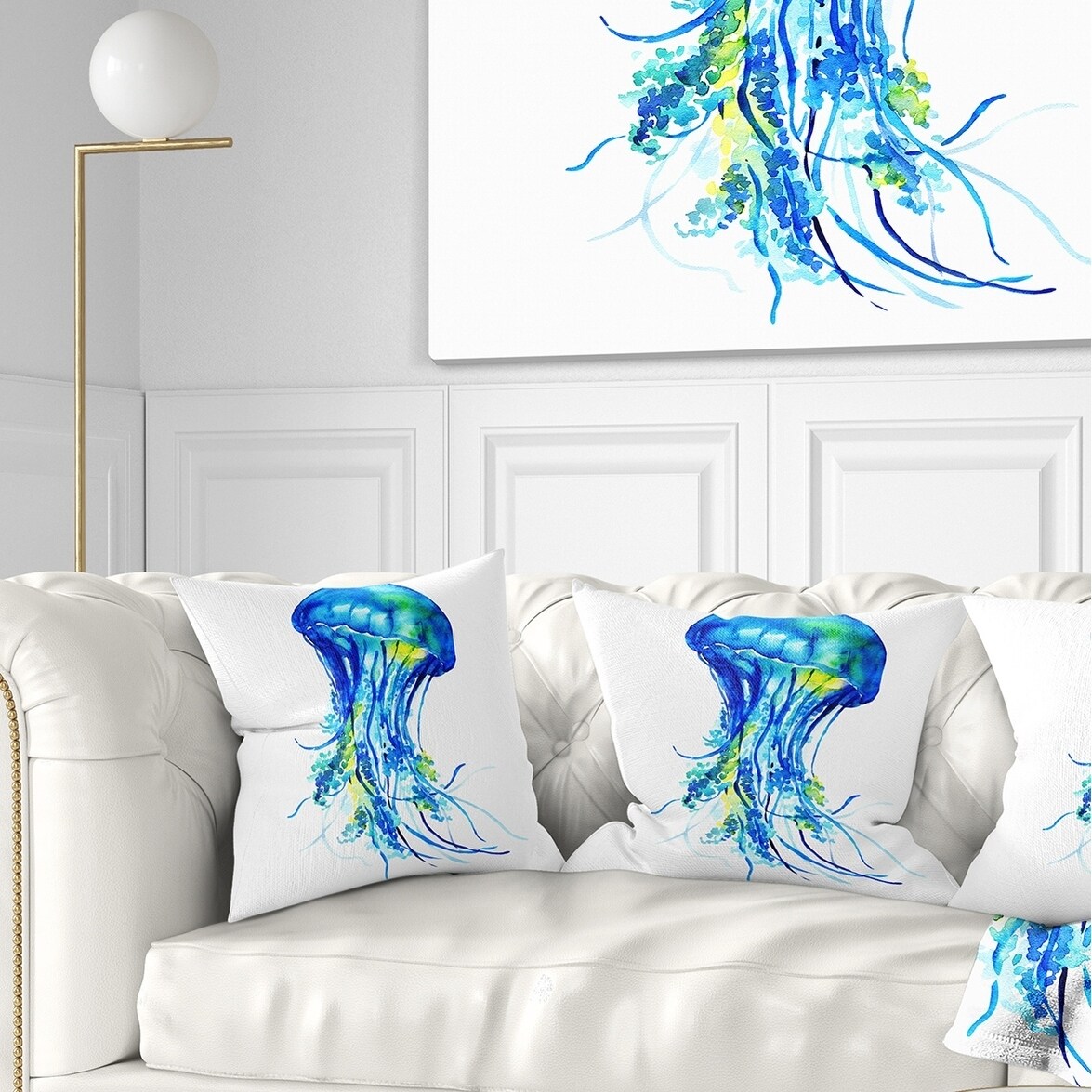 Designart 'Ocean Water Jellyfish' Animal Throw Pillow
