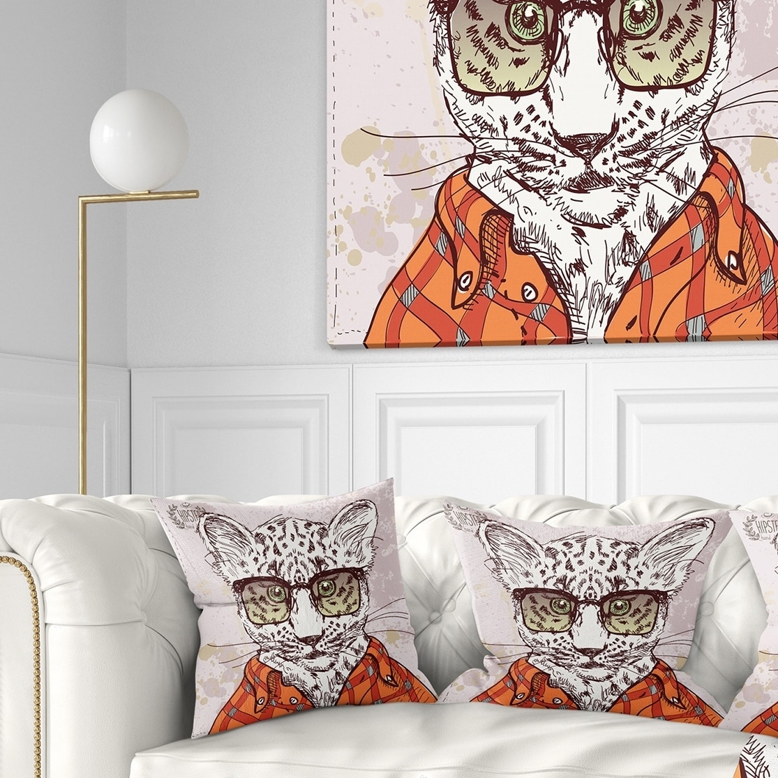 Designart 'Funny Hipster Leopard with Glasses' Animal Throw Pillow