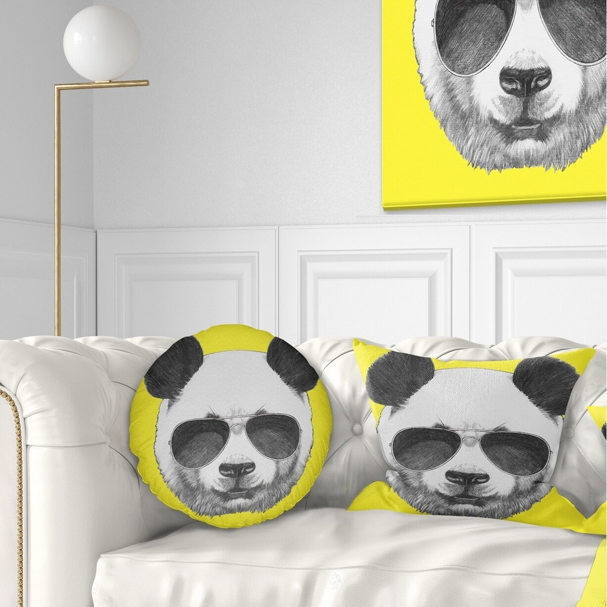 Designart 'Funny Panda with Sunglasses' Animal Throw Pillow