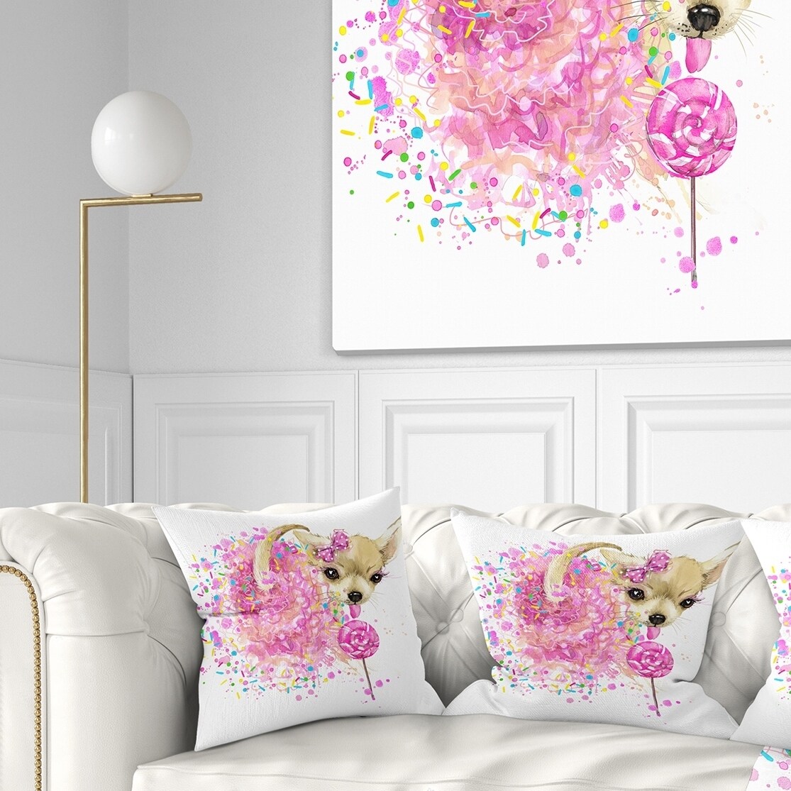 Designart 'Sweet Pink Dog without Glasses' Animal Throw Pillow