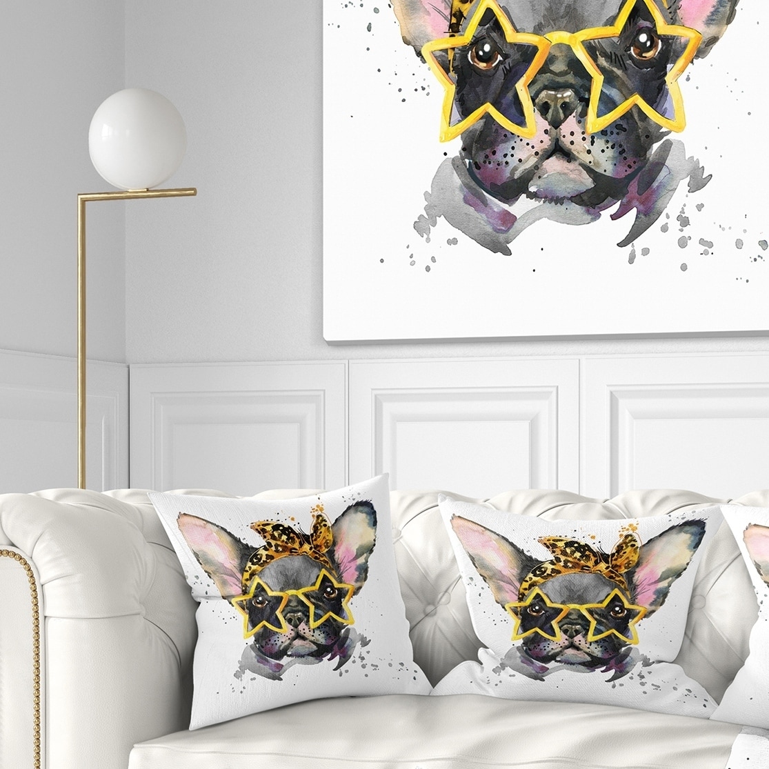 Designart 'French Bulldog with Star Glasses' Animal Throw Pillow