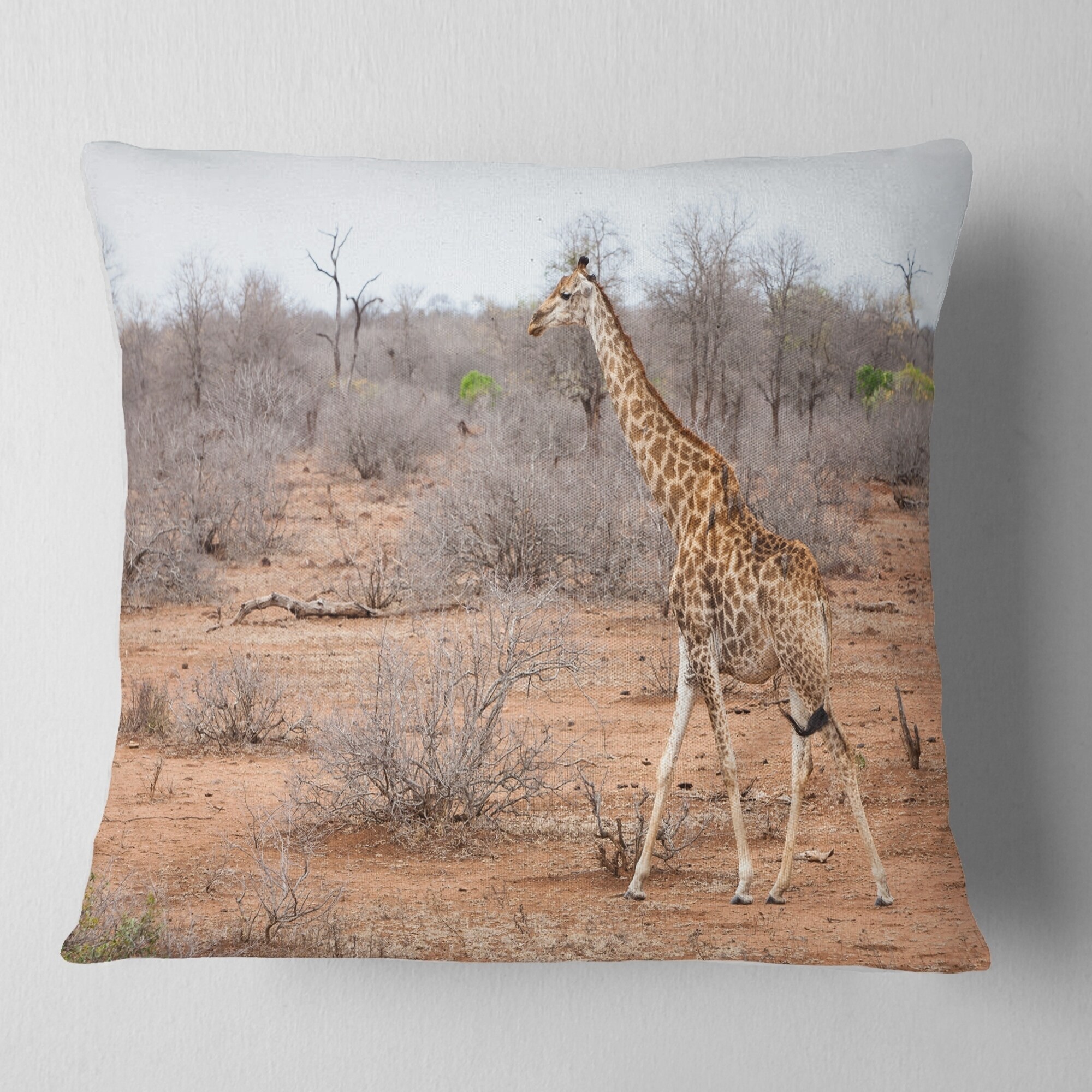Designart 'Giraffe Walking through African Forest' Animal Throw Pillow