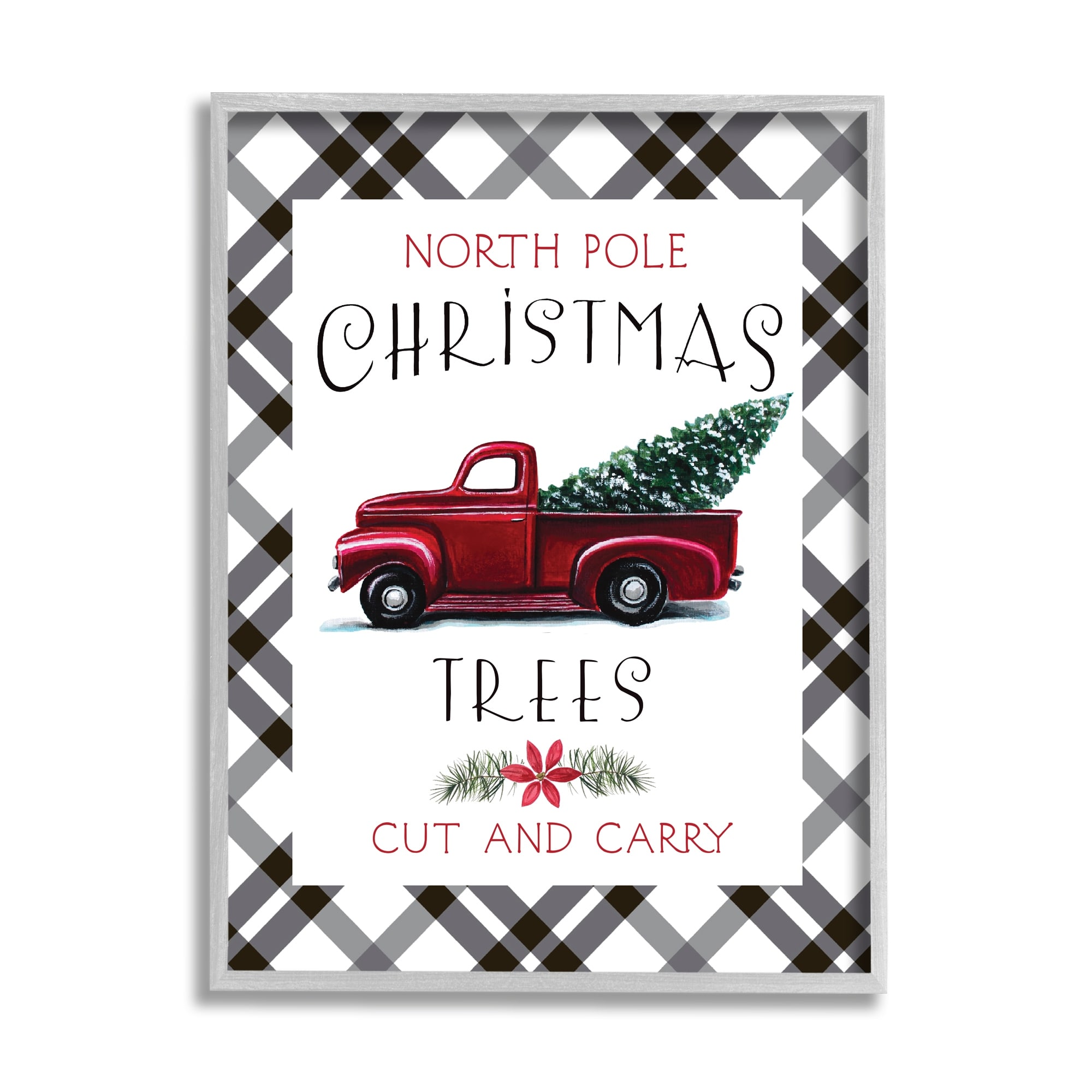 Stupell Industries North Pole Christmas Trees Red Truck Black Plaid Framed Wall Art
