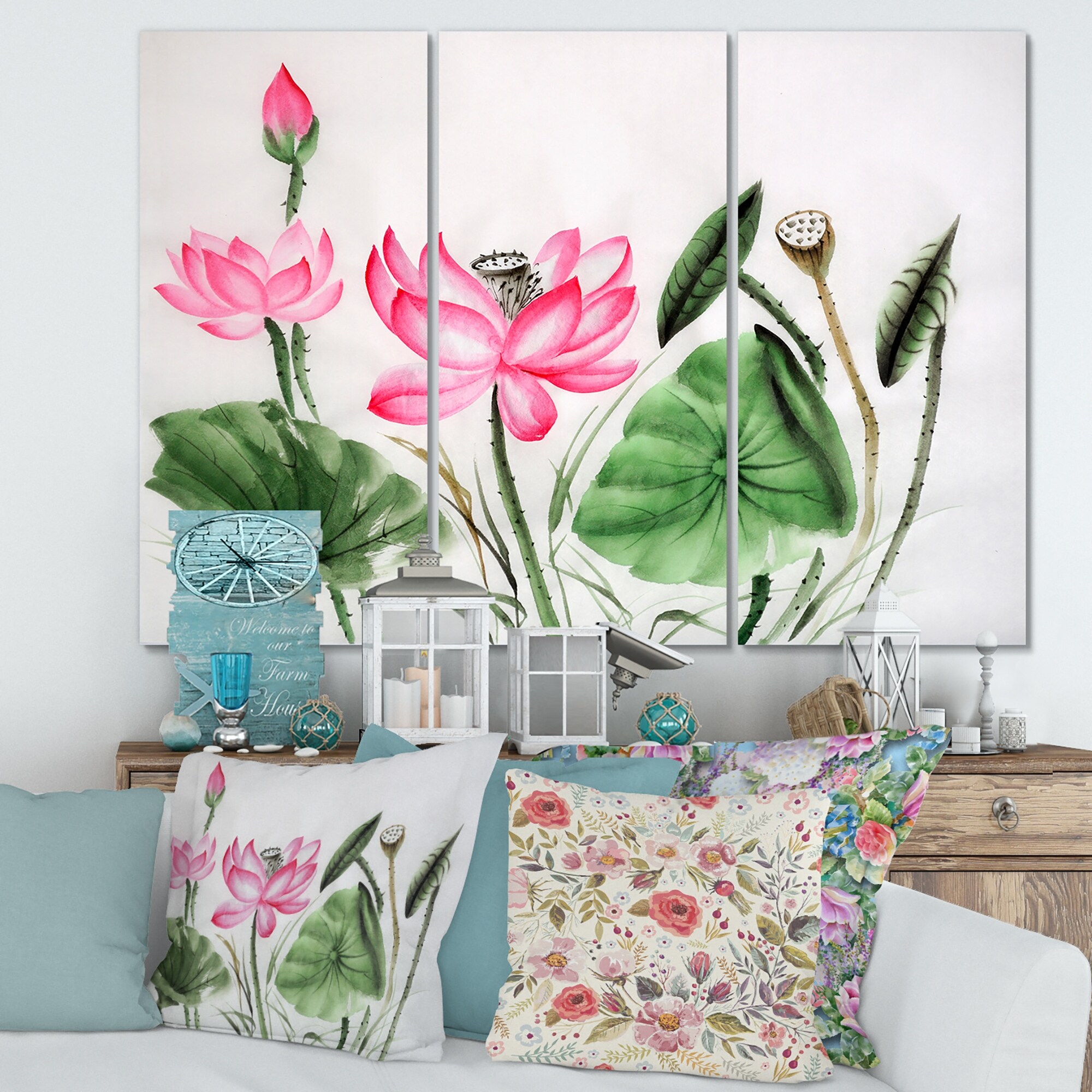 Designart "Vintage Pink Lotuses in the Pond II" Traditional Canvas Wall Art Print