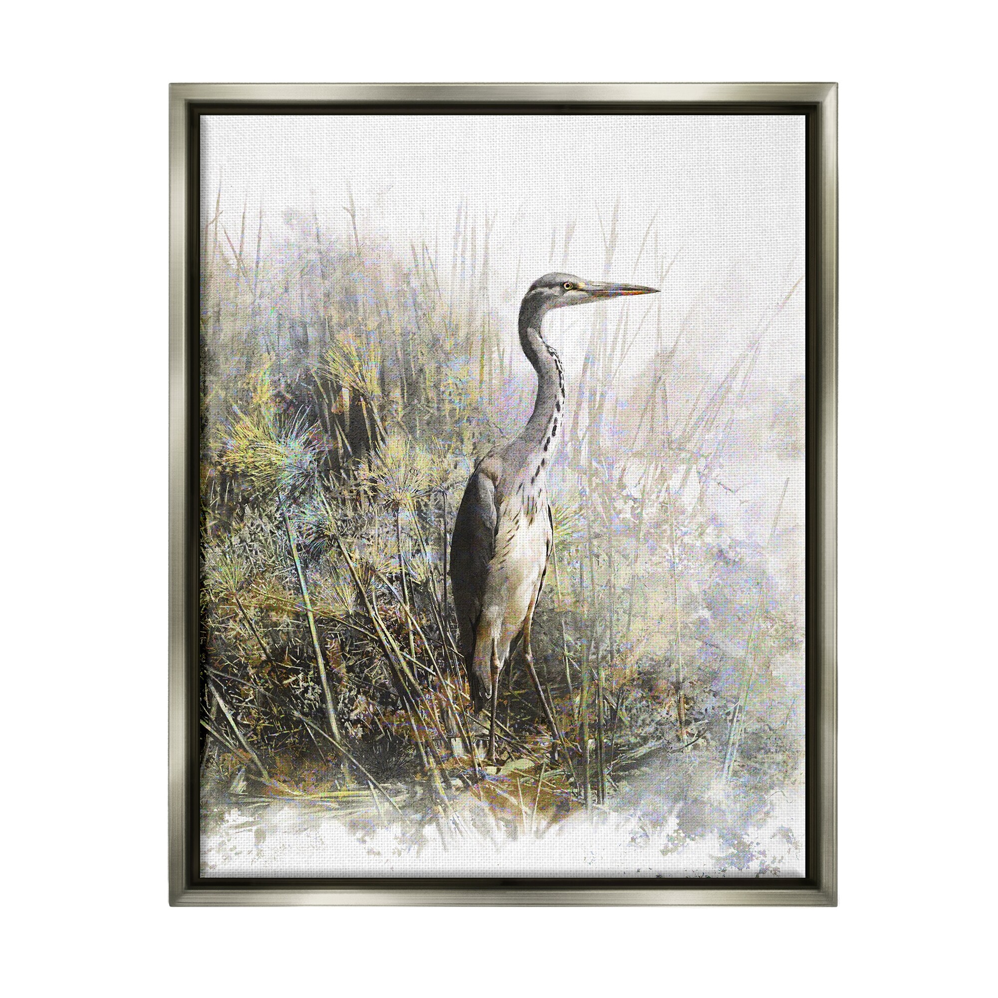 Stupell Industries Heron Bird Water's Edge Pond Framed Floater Canvas Wall Art by Pip Wilson