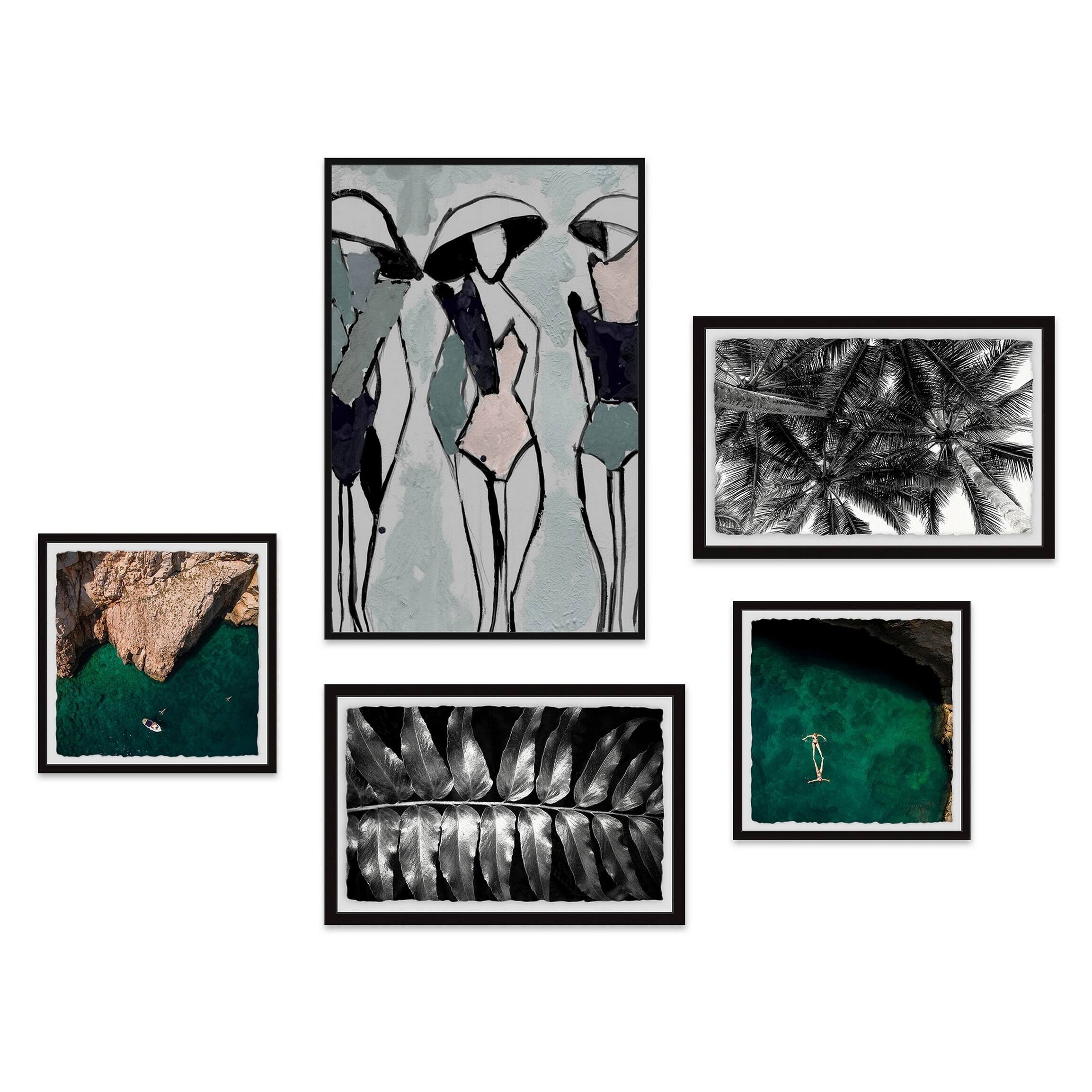 Marmont Hill - Handmade Pools of Green Pentaptych Wall Art - Multi-color