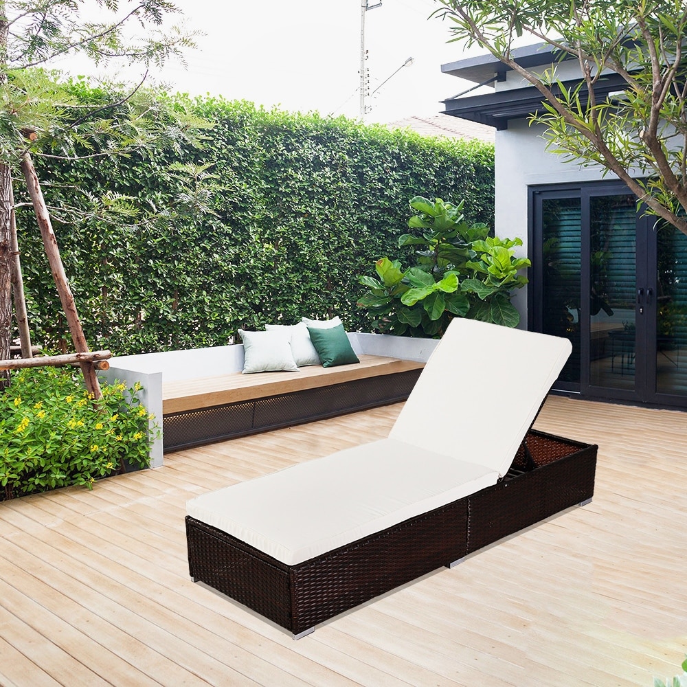 Patio Outdoor Adjustable Pool Chaise Lounge Chair, Iron Frame w/ Cushion
