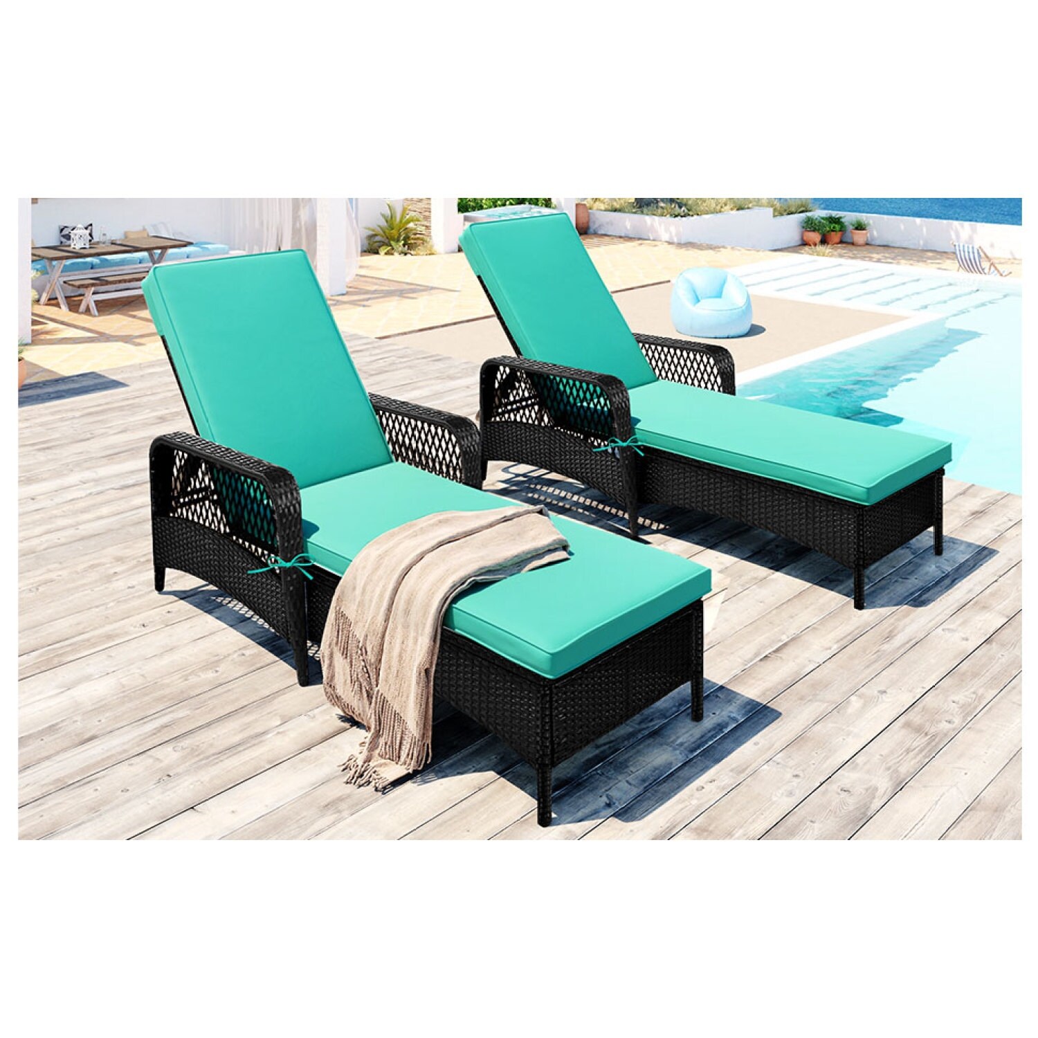 Patio Recliner Chairs with Adjustable Backrest and Removable Pillow for Indoor&Outdoor Beach Pool Sunbathing (2 Lounge Chairs)