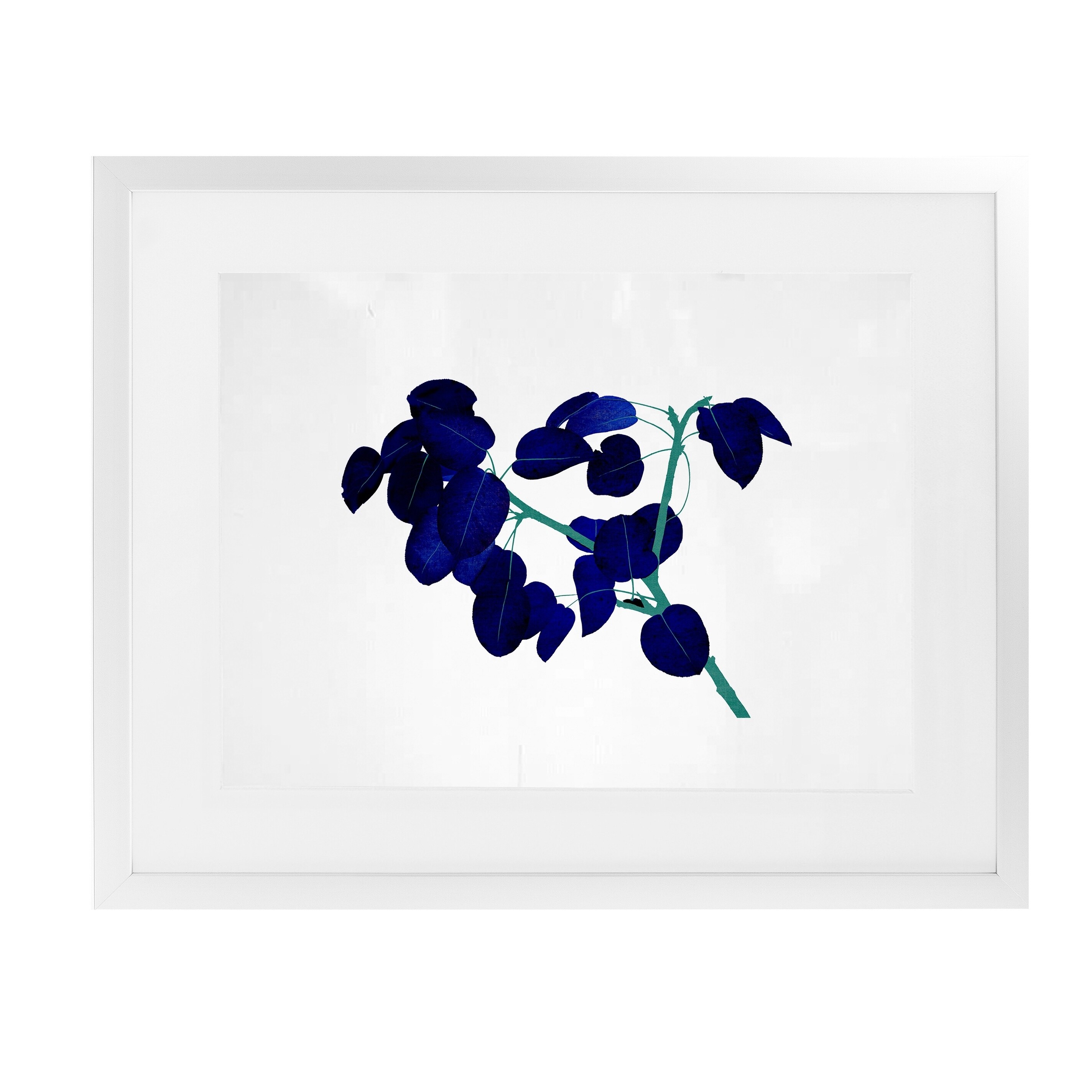 BLUE LEAVES White Framed Giclee Print by Kavka Designs
