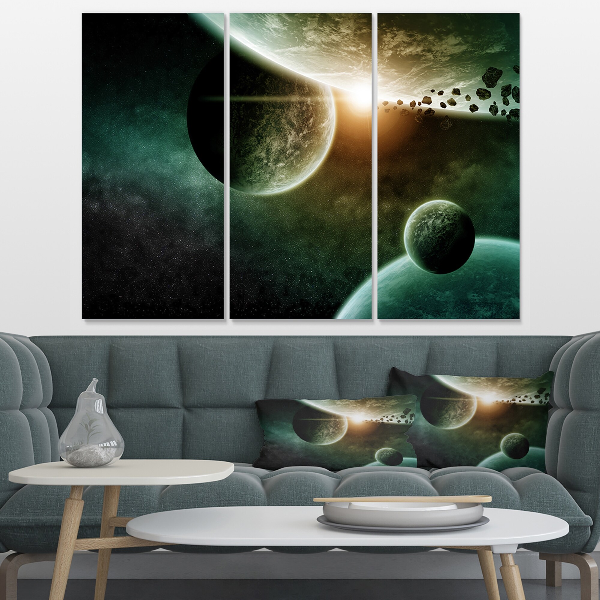 Designart "Space Planet" Contemporary Canvas Art Print - 36x28 - 3 Panels