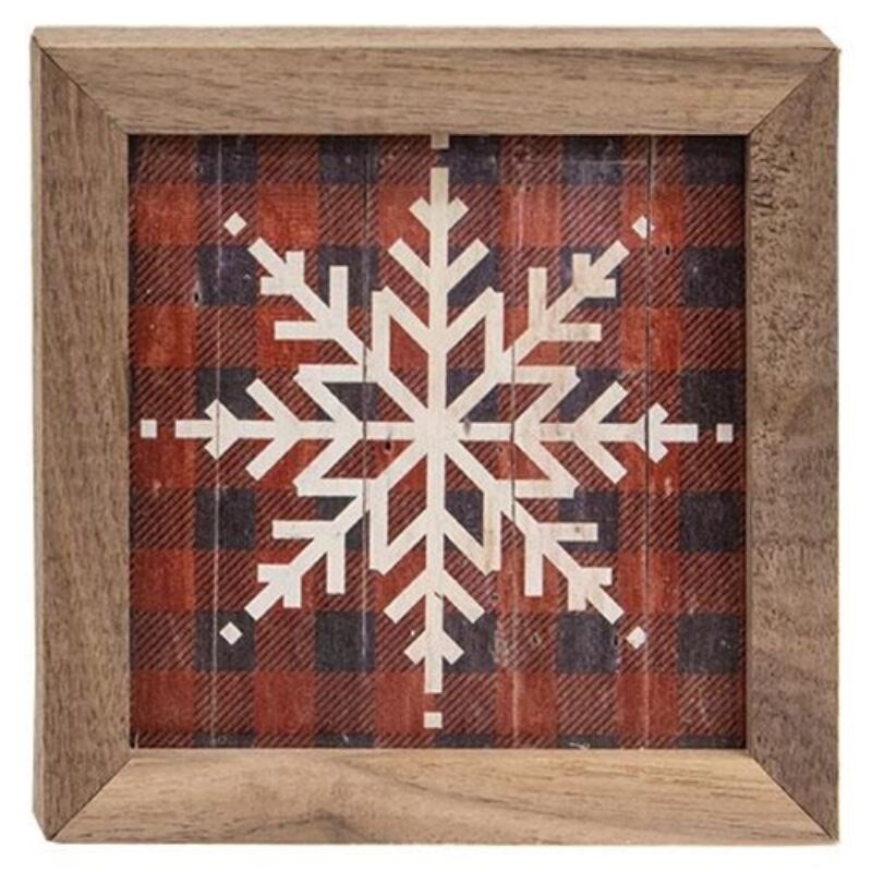 Black & Red Plaid Snowflake Mini Framed Print - 4.5" high by 4.5" wide by .75" deep.