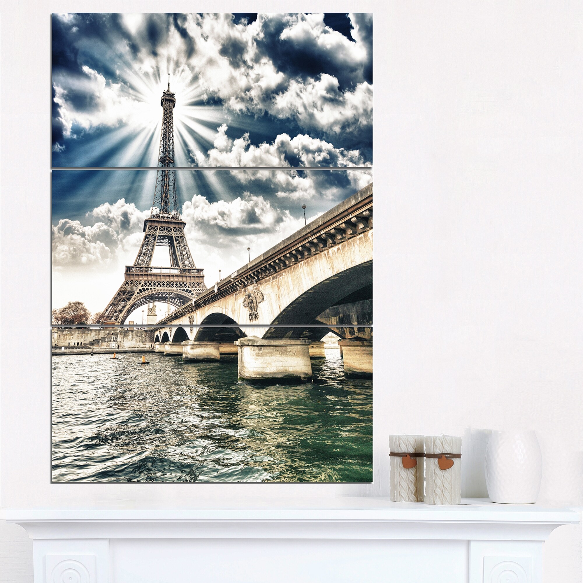 Designart "Paris Eiffel Towerand Iena Bridge" Cityscape Photo Canvas Art Print - 28x36 - 3 Panels