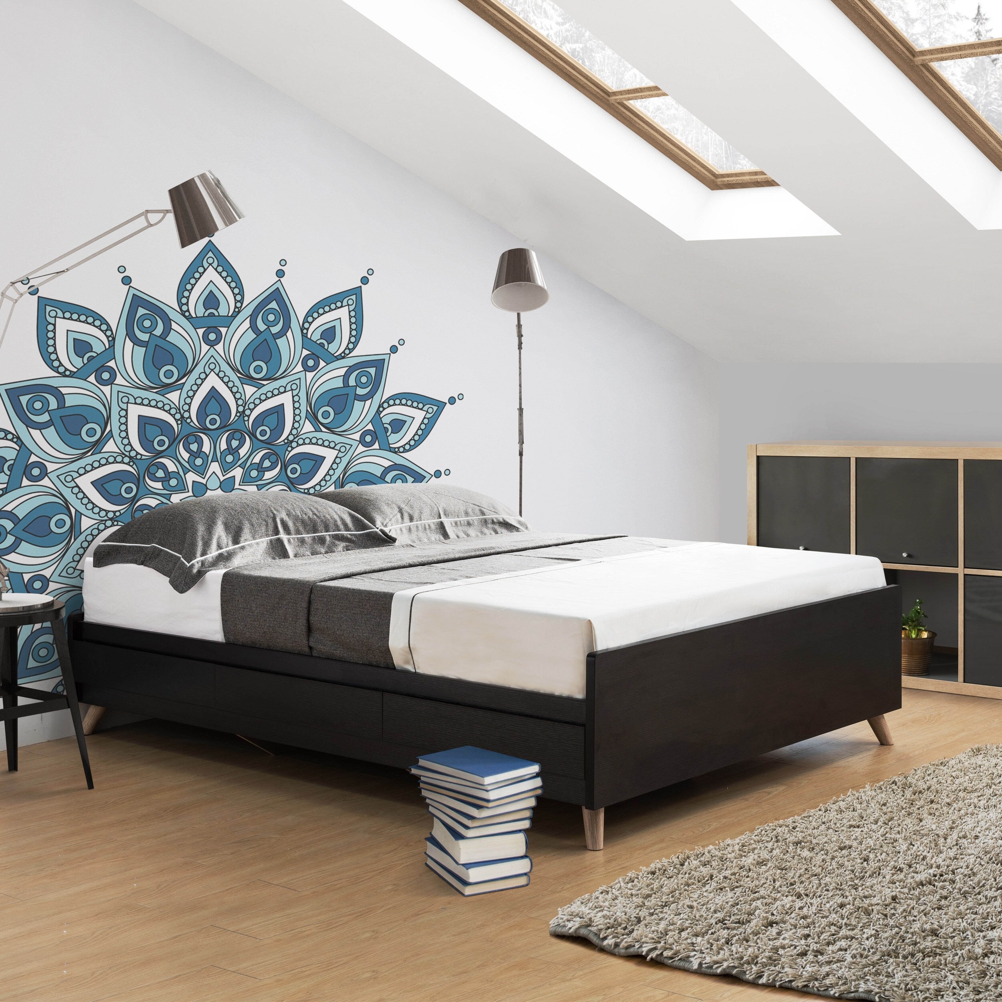 DH BASIC Mid-Century Modern Cappuccino Queen 3-Drawer Storage Platform Bed by Denhour