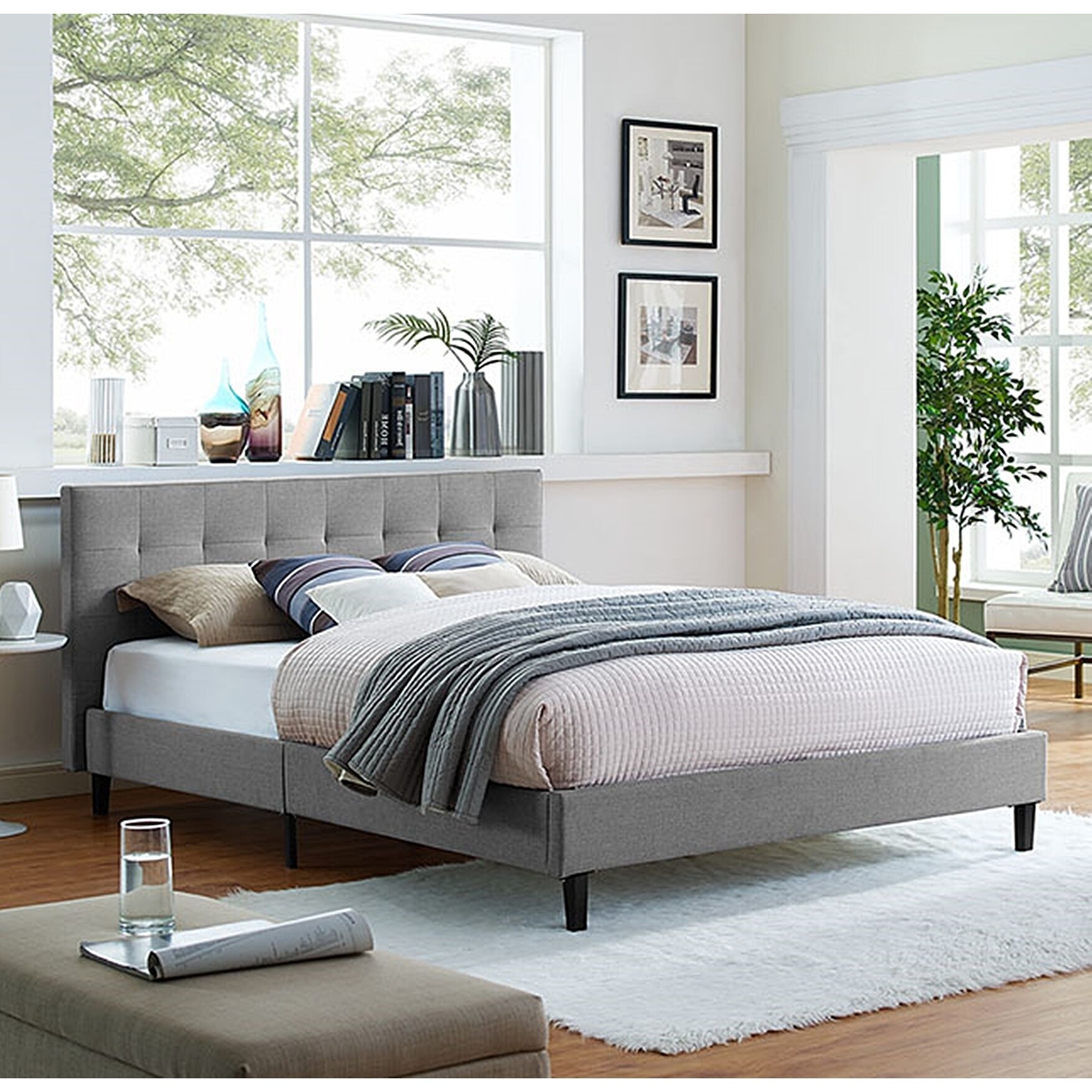 Copper Grove Silistra Queen-size Light Grey Fabric Platform Bed with Tufted Headboard