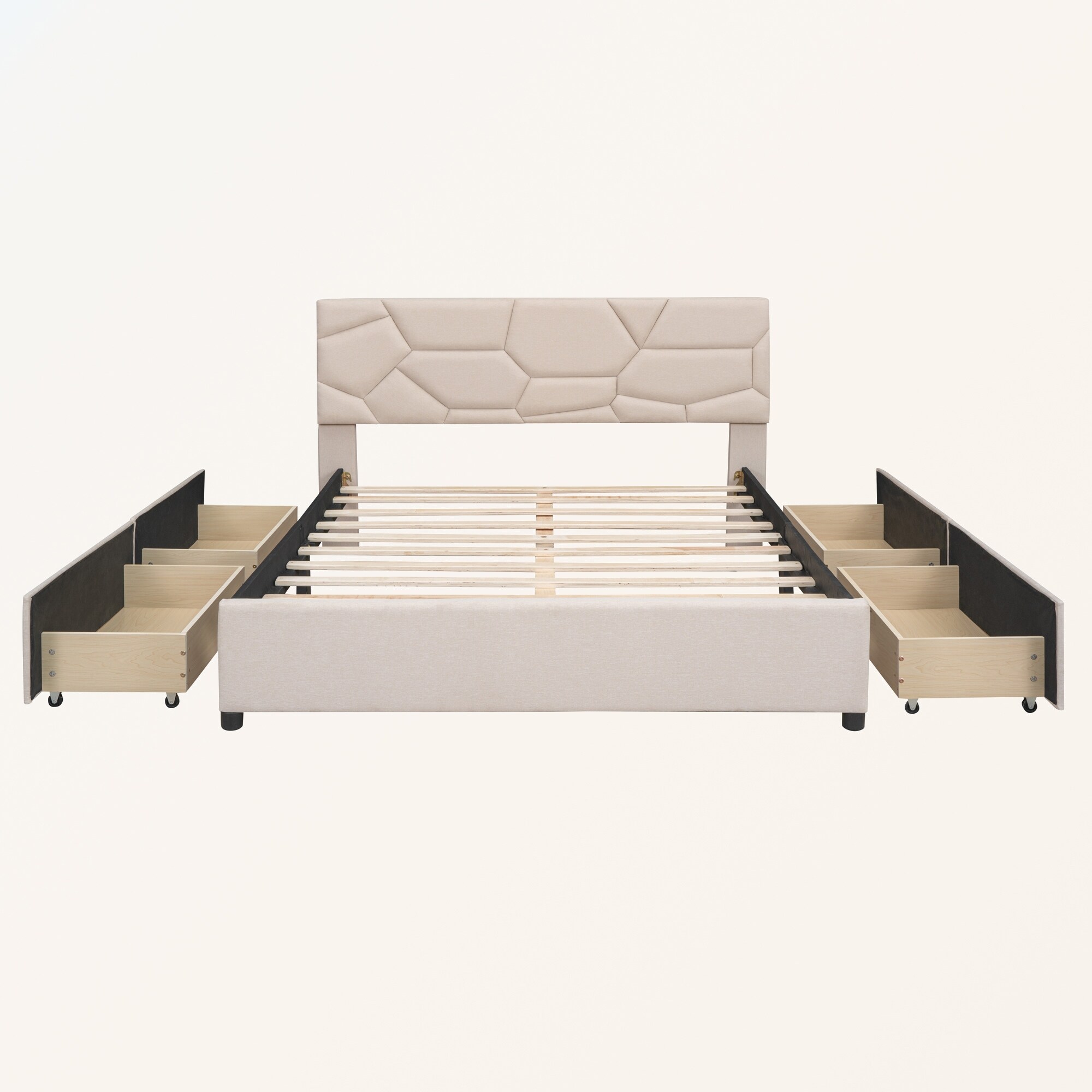 Queen Size Upholstered Platform Bed with 4 Drawers
