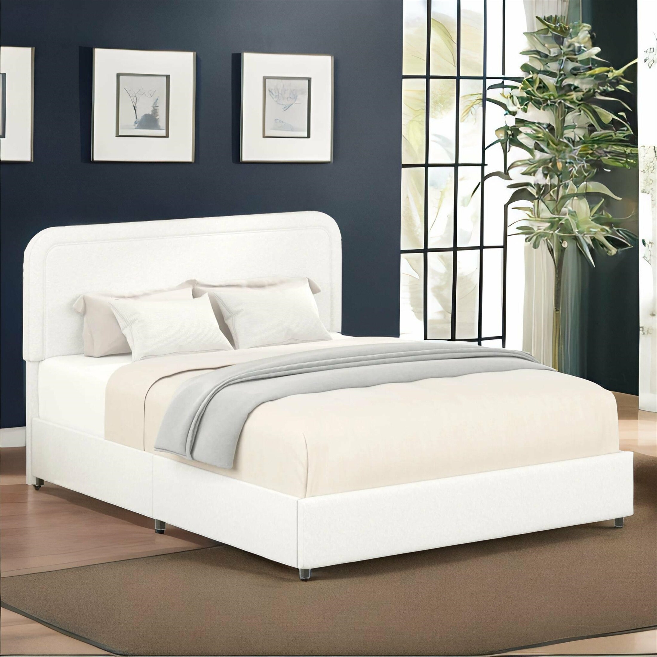 Ivory Queen Size Boucle Upholstered Platform Bed