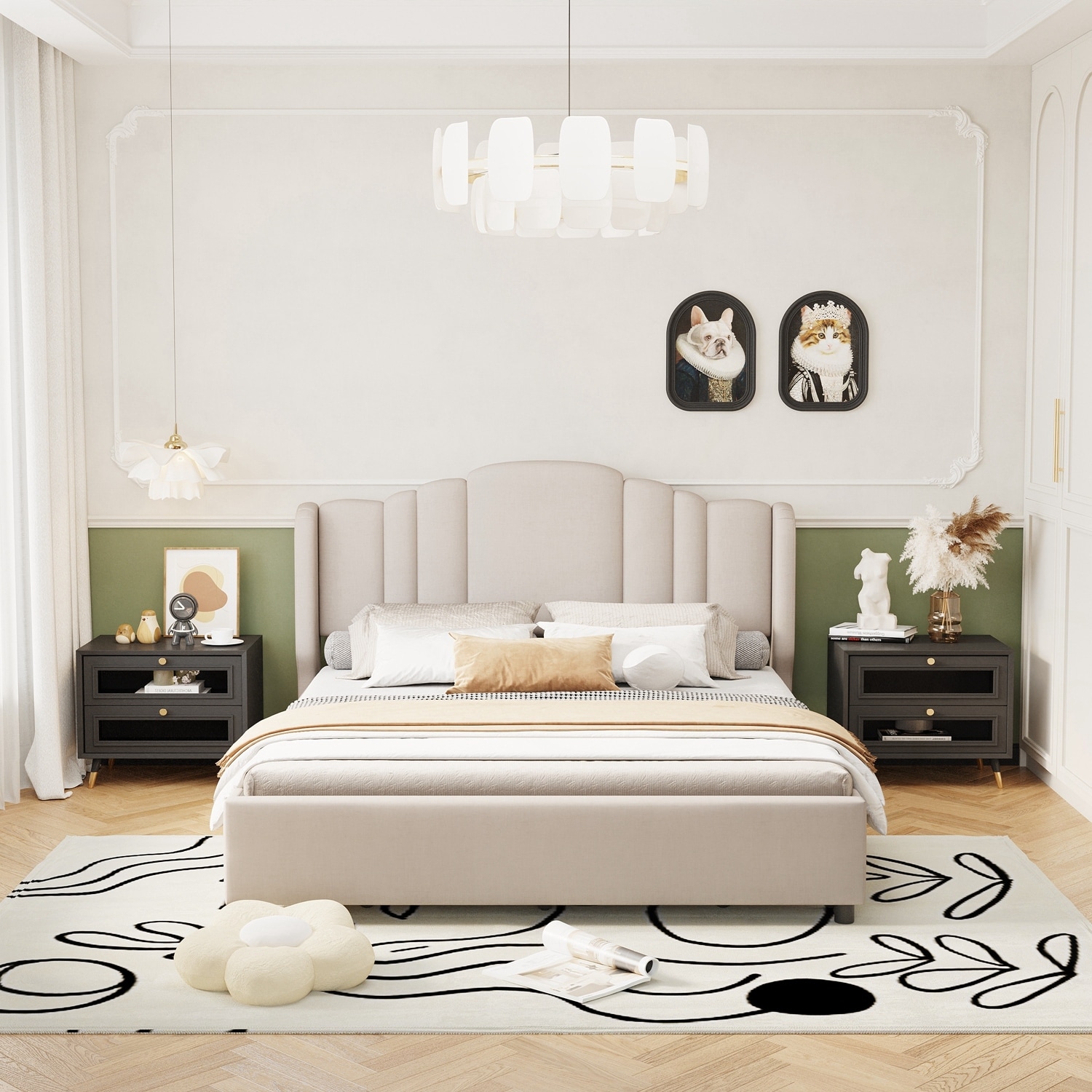 Queen Size Upholstered Platform Bed with Wingback Tufted Headboard