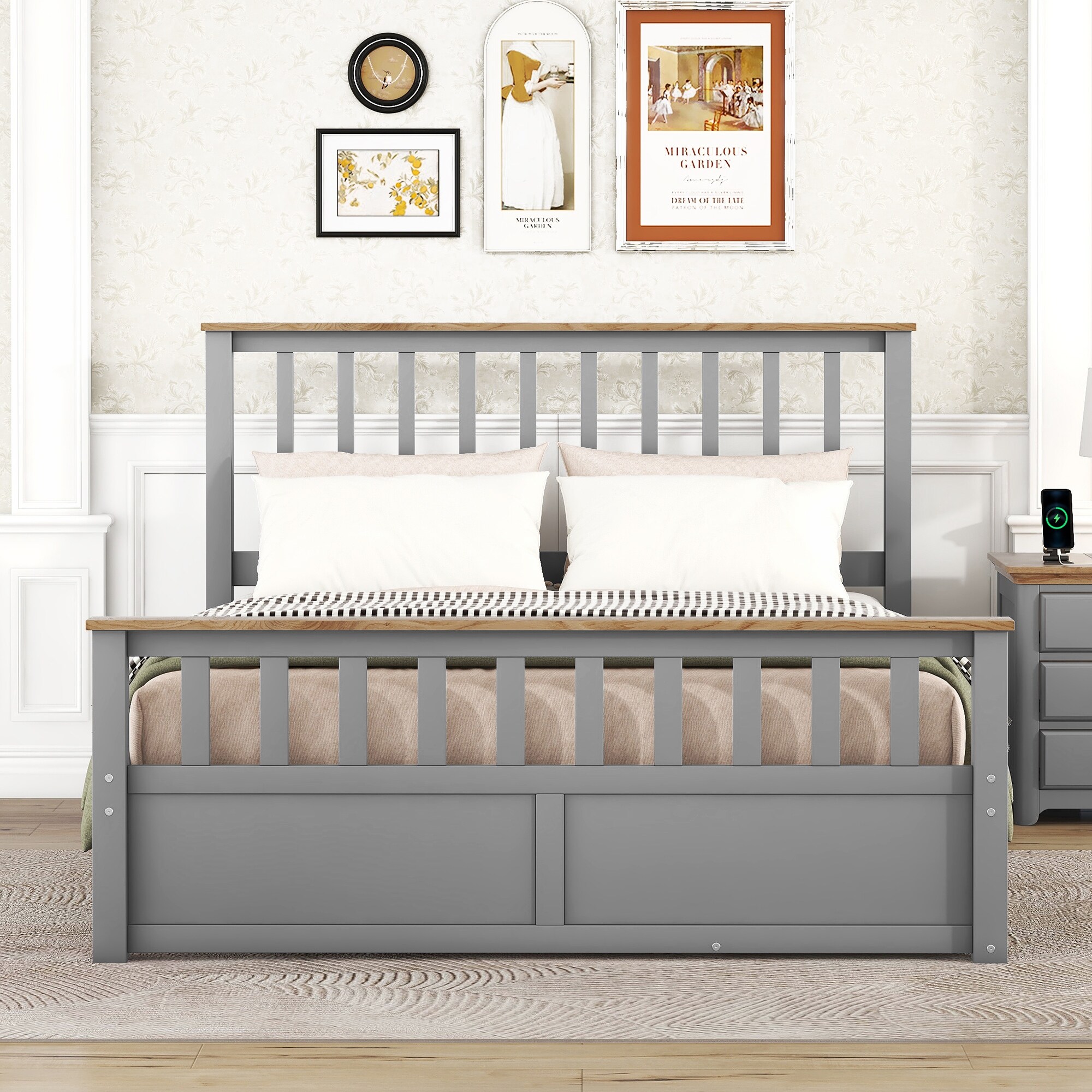 Queen Size Platform Bed with Headboard and Footboard