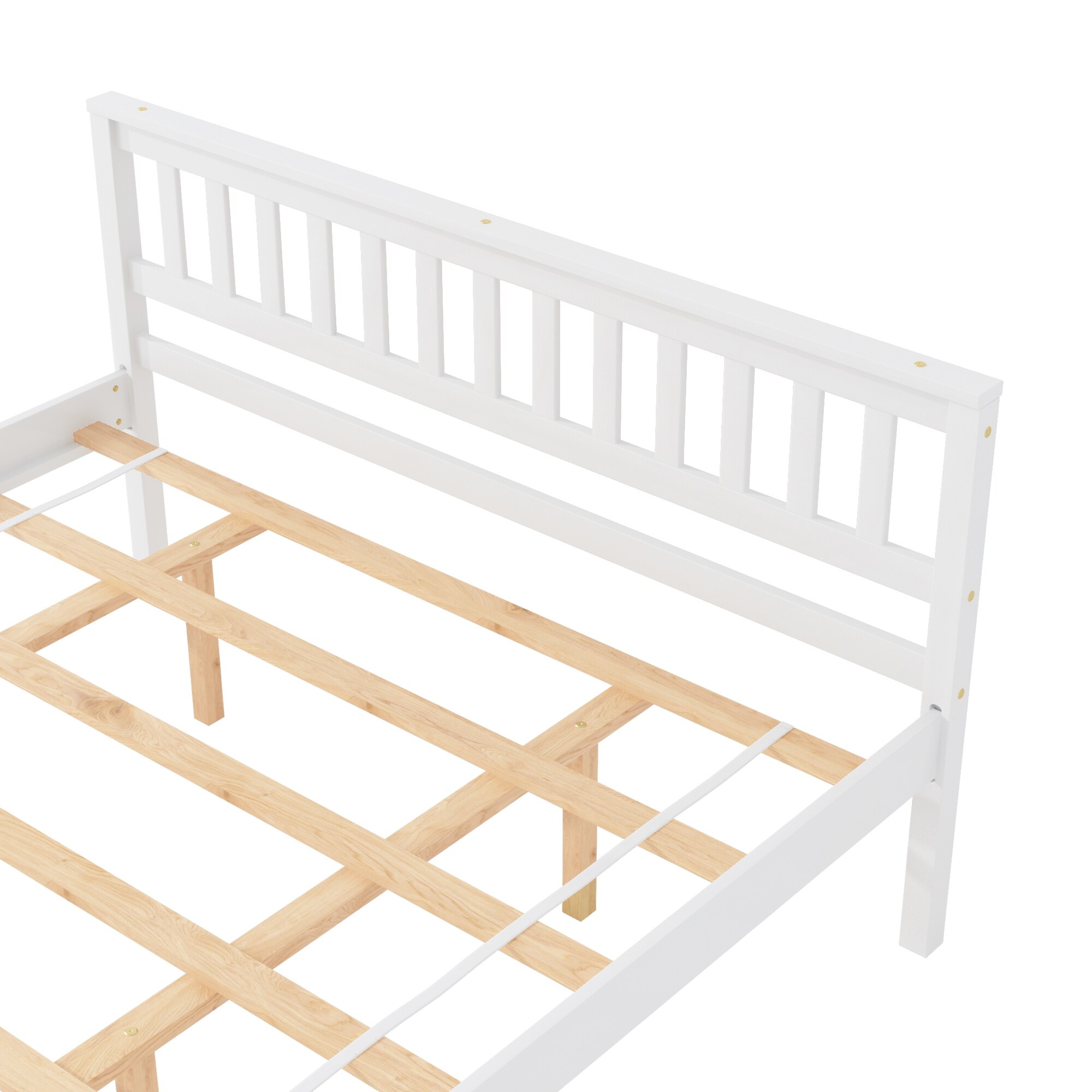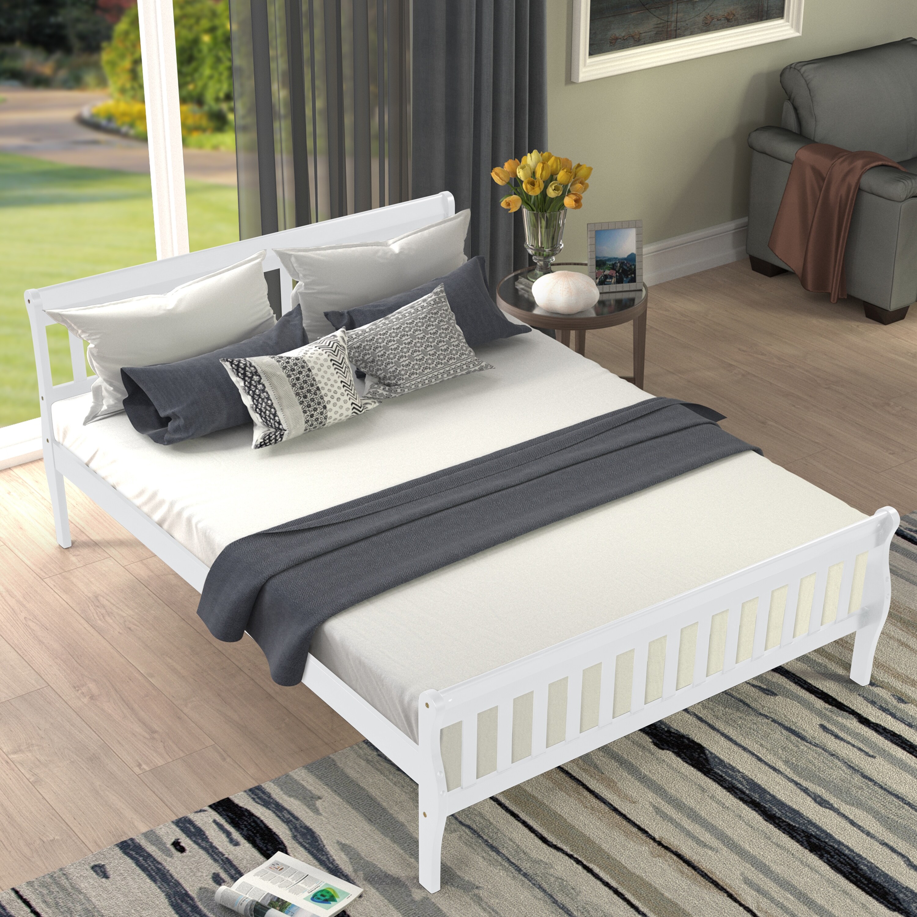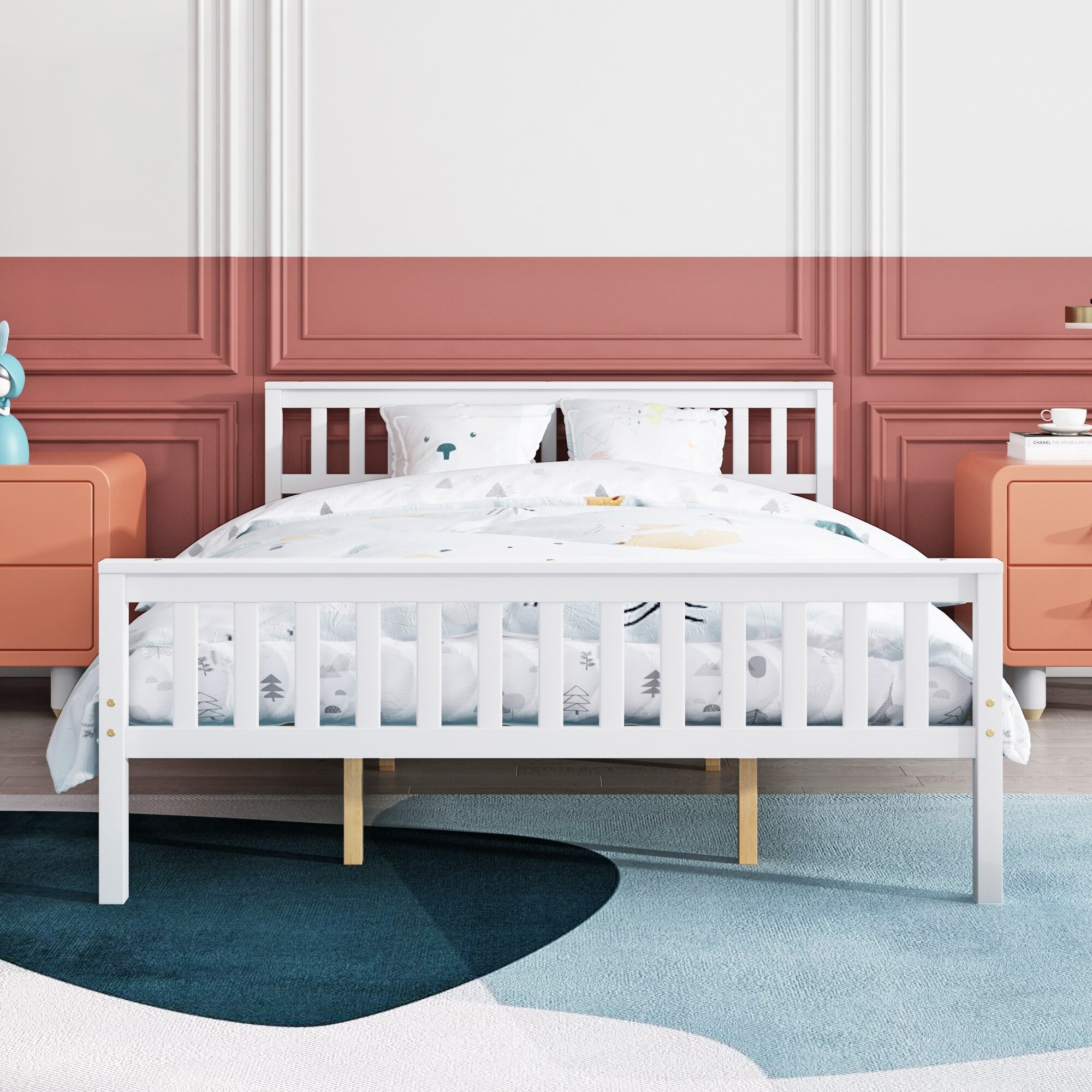 Classic Pine Wood Platform Bed with Headboard, Footboard, and Wooden Slat Support, Queen Size