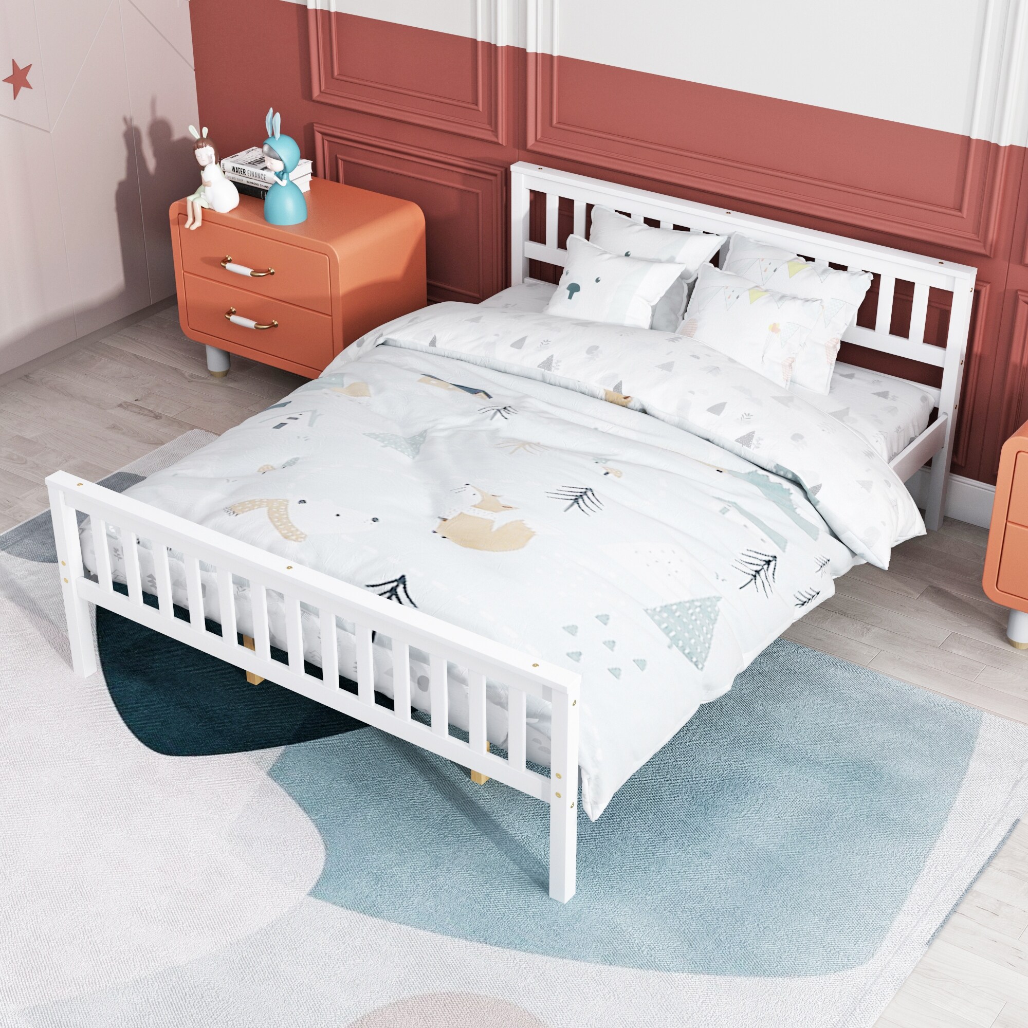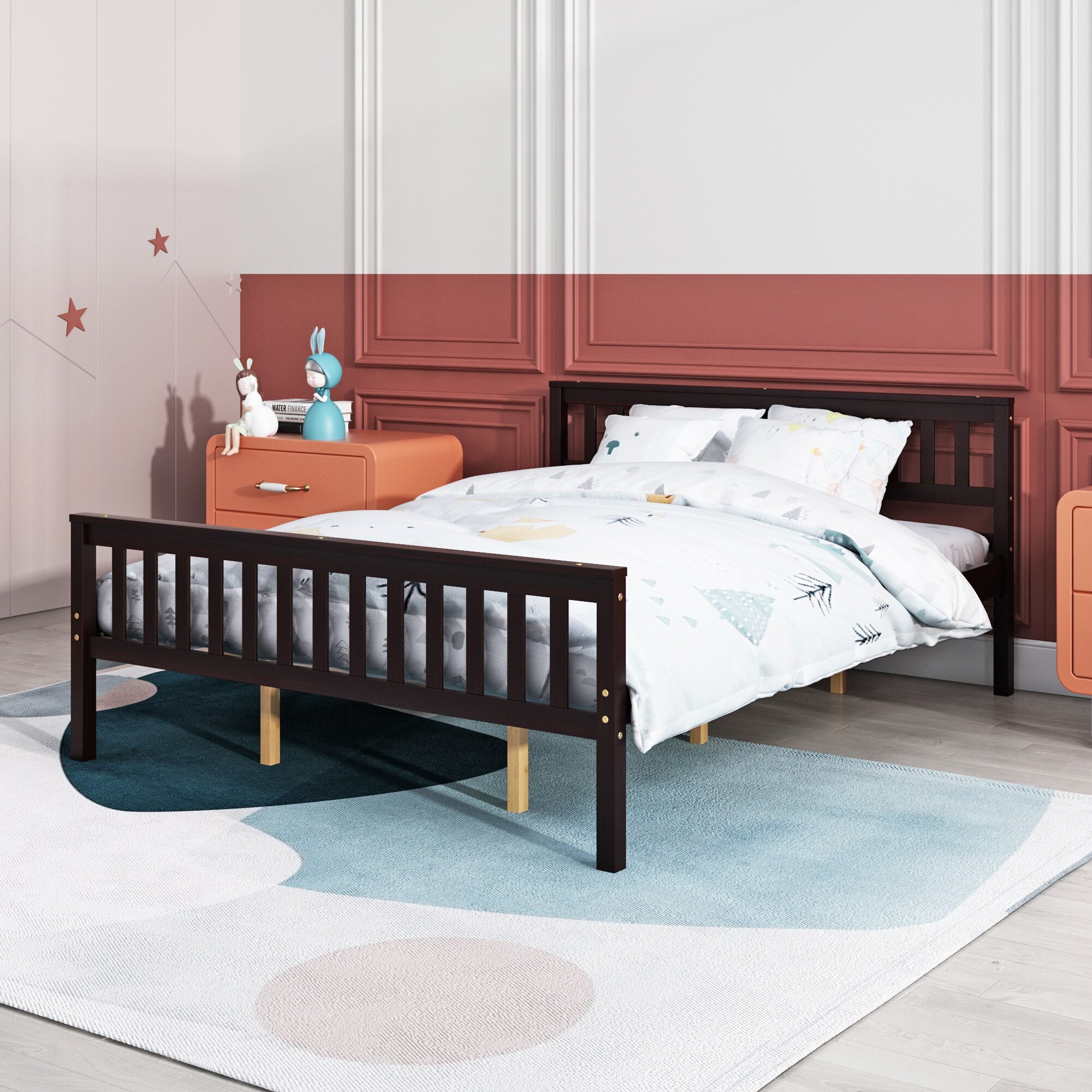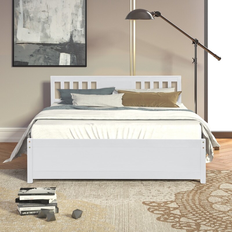 Classic Pine Wood Platform Bed with Headboard, Footboard, and Wooden Slat Support, Queen Size