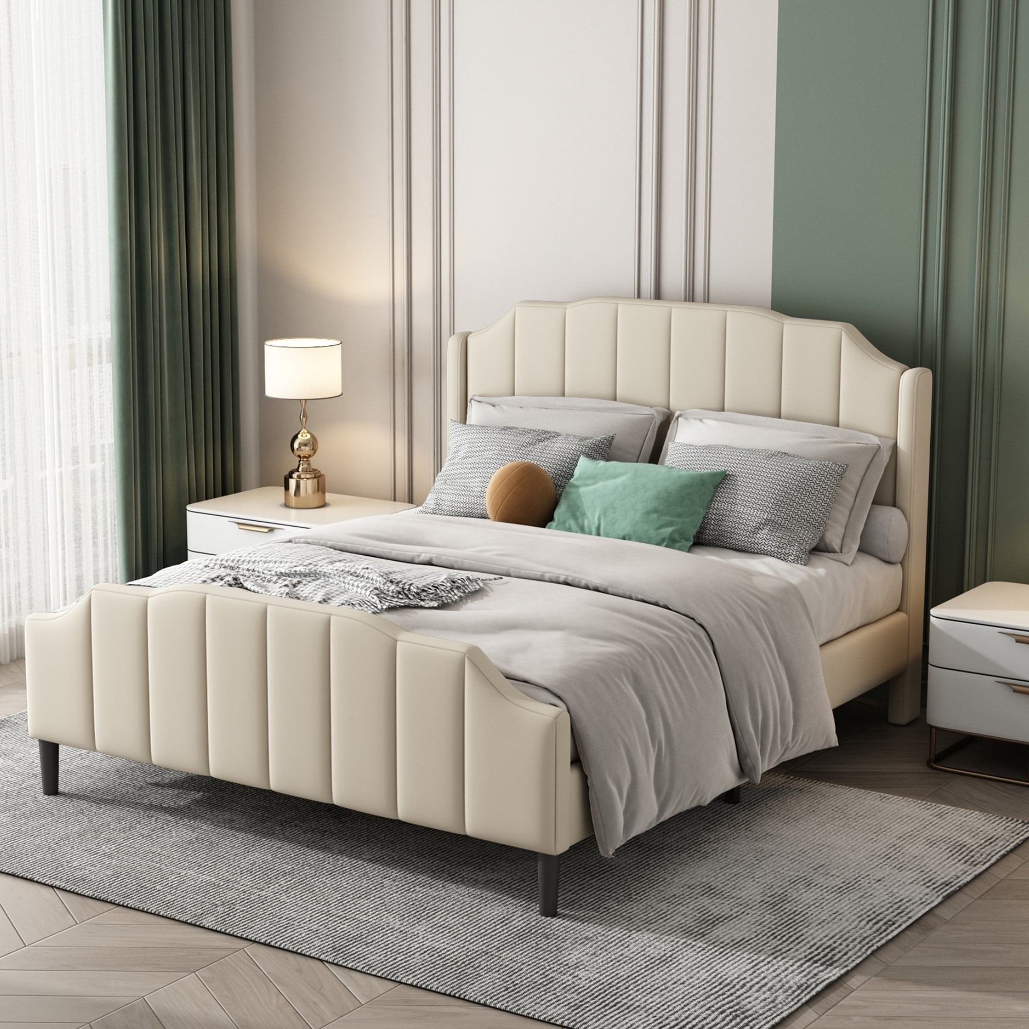 Queen Size Upholstered Platform Bed with Headboard and Footboard