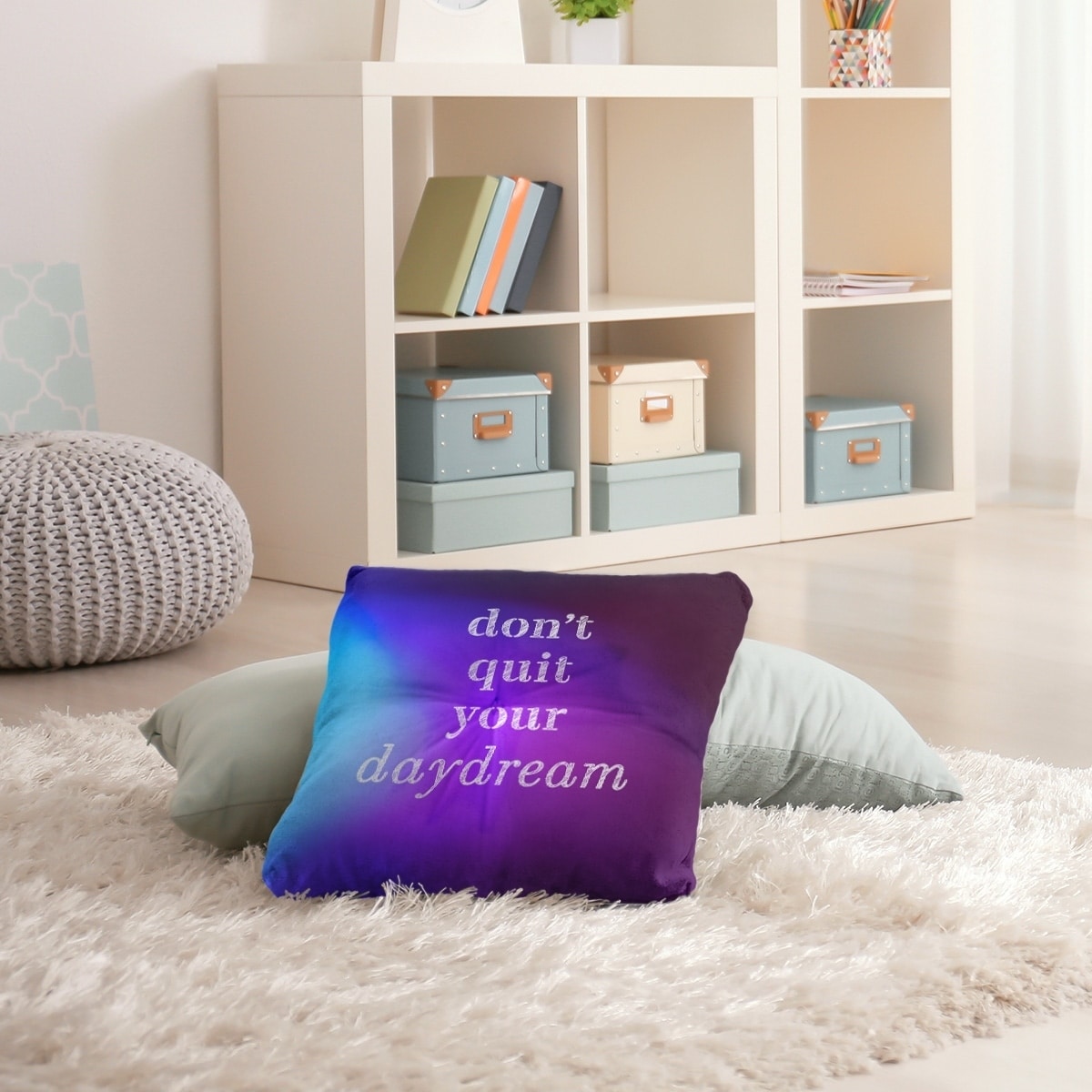 Quotes Faux Gemstone Don't Quit Your Daydream Quote Floor Pillow - Square Tufted