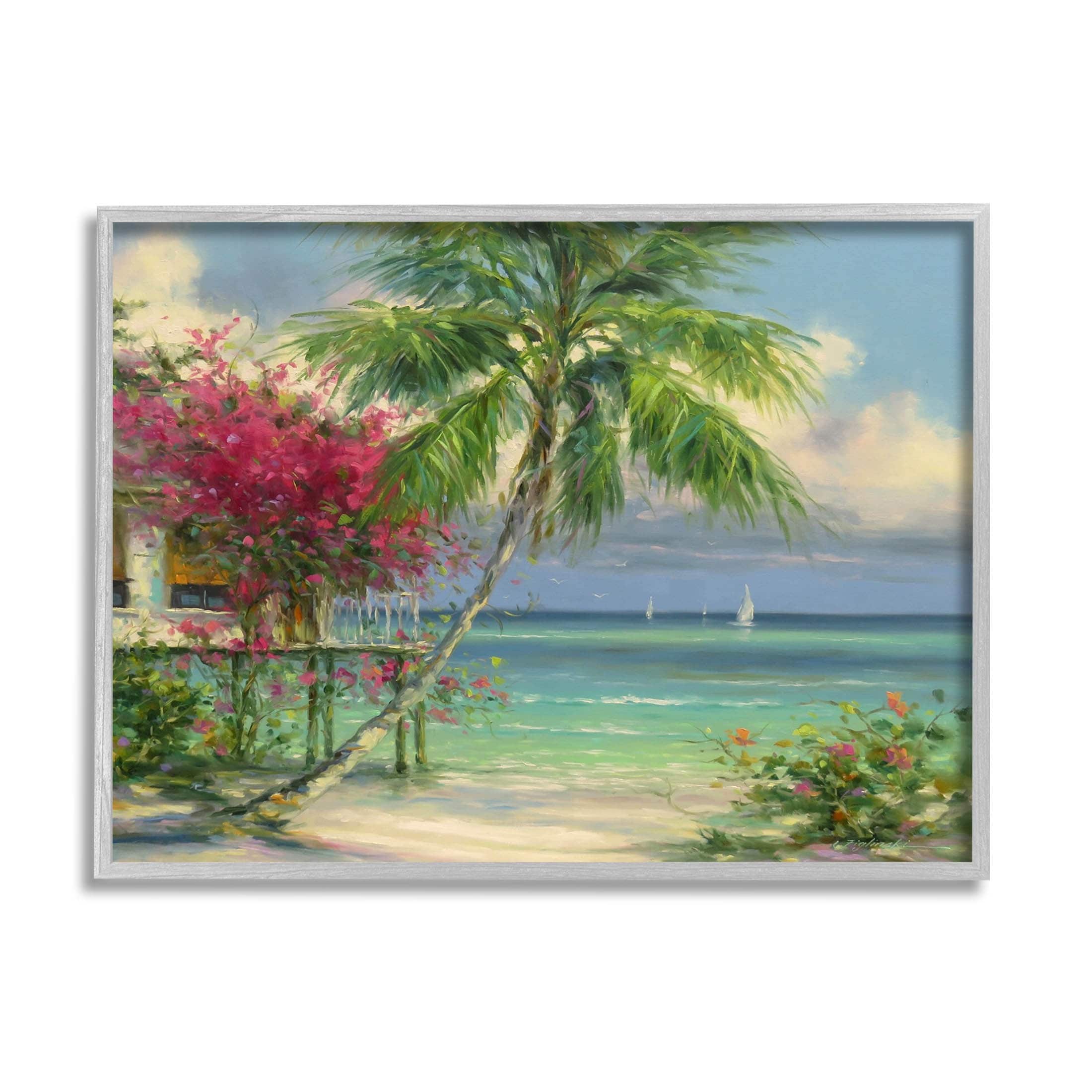 Stupell Industries Floral Tropical Summer Vacation Resort Framed Giclee Art by Martin Figlinski