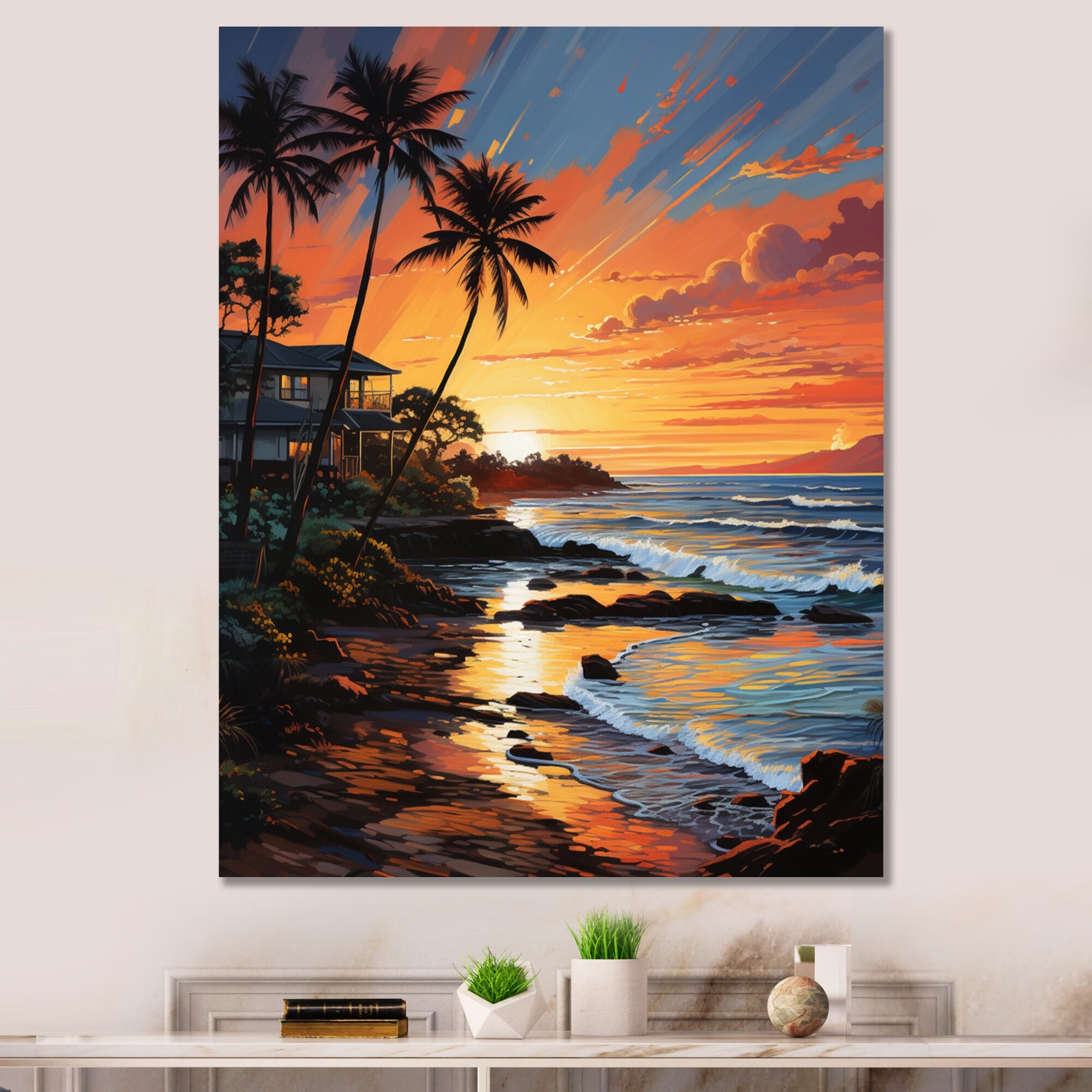 Designart "Palm Beach Resort At Dawn II" Nautical & Coastal Canvas Wall Art Print