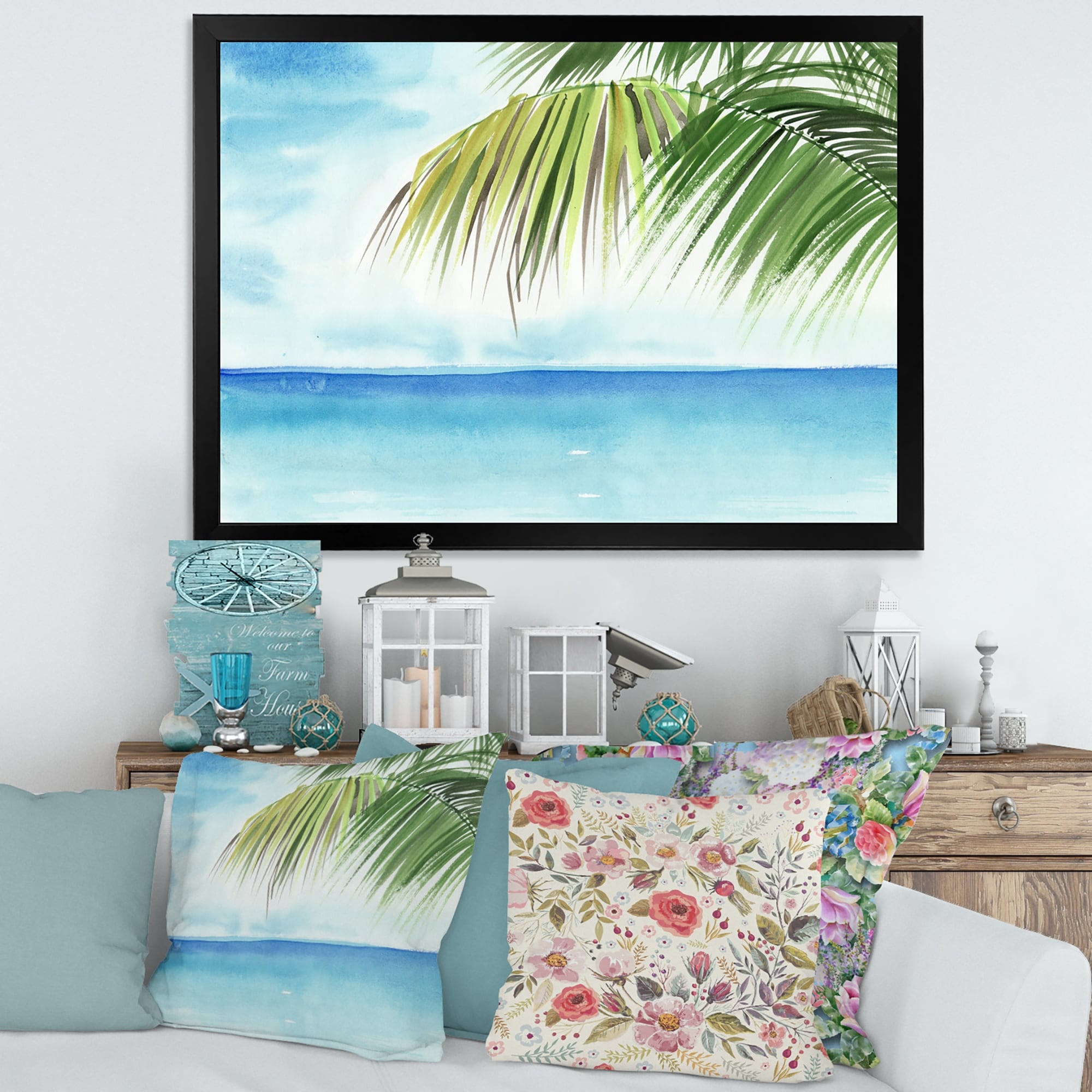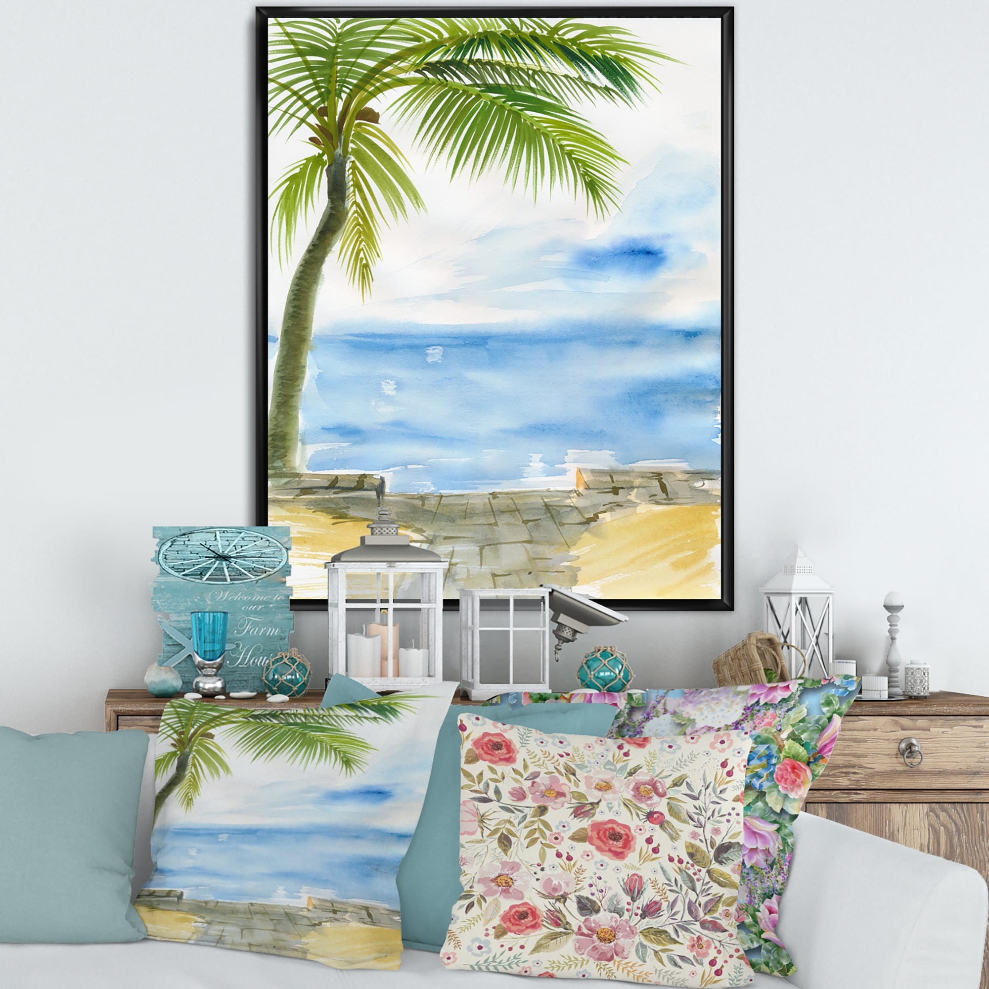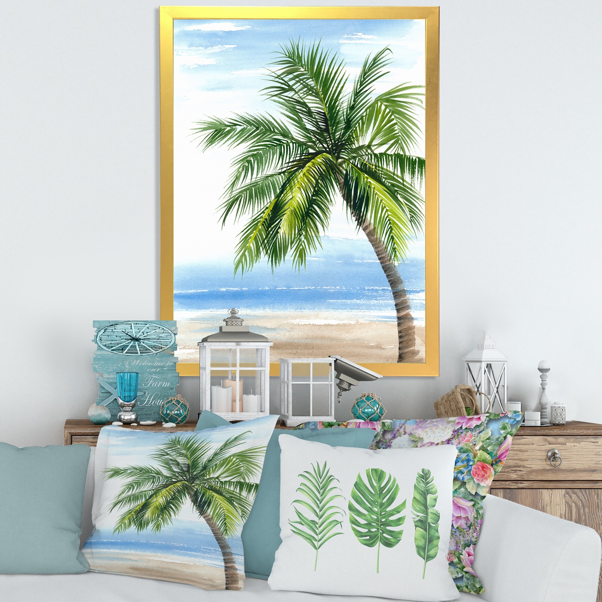 Designart "Palm Tree At the Beach Resort" Nautical & Coastal Framed Art Print