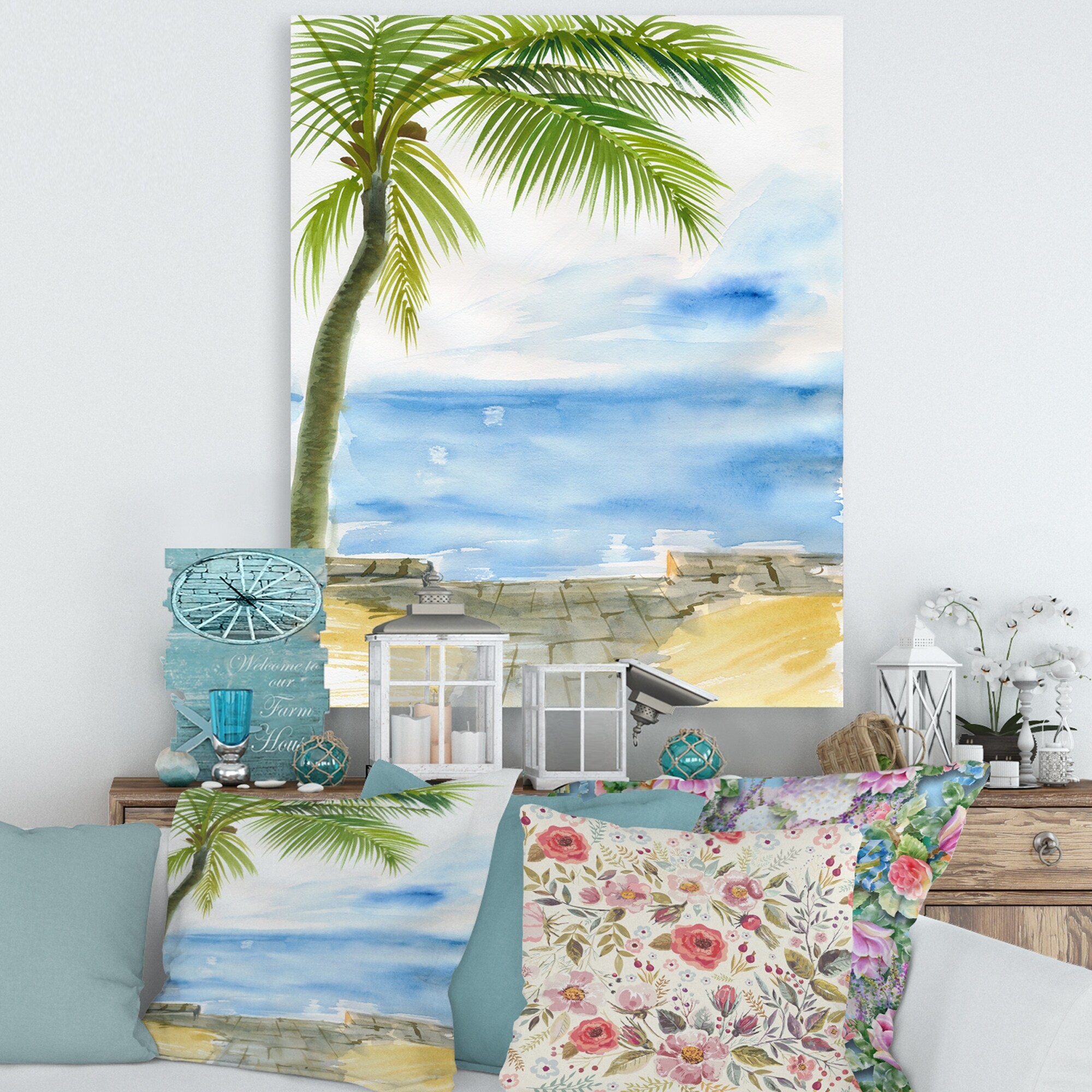 Designart "Palm Tree At the Beach Resort" Nautical & Coastal Canvas Wall Art Print