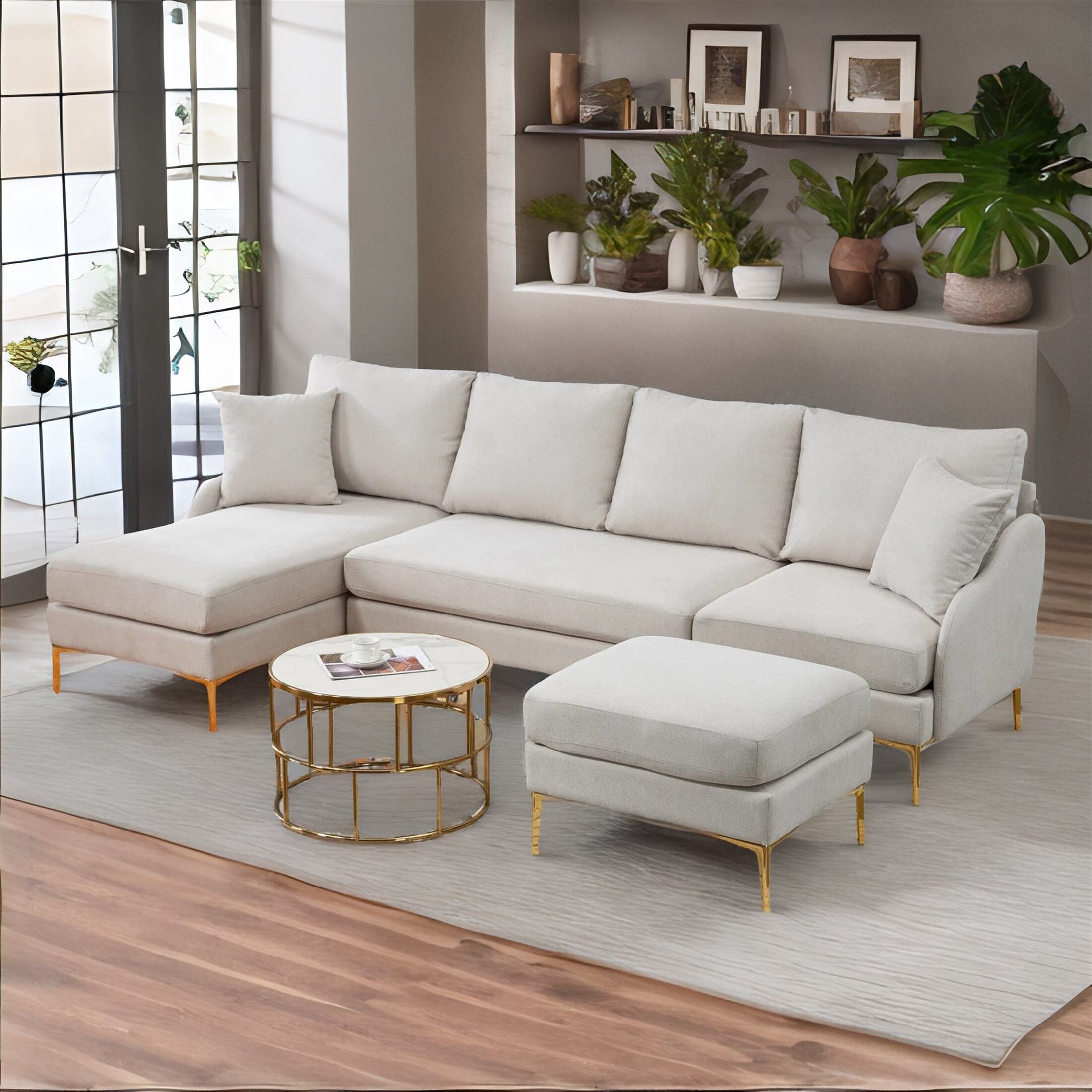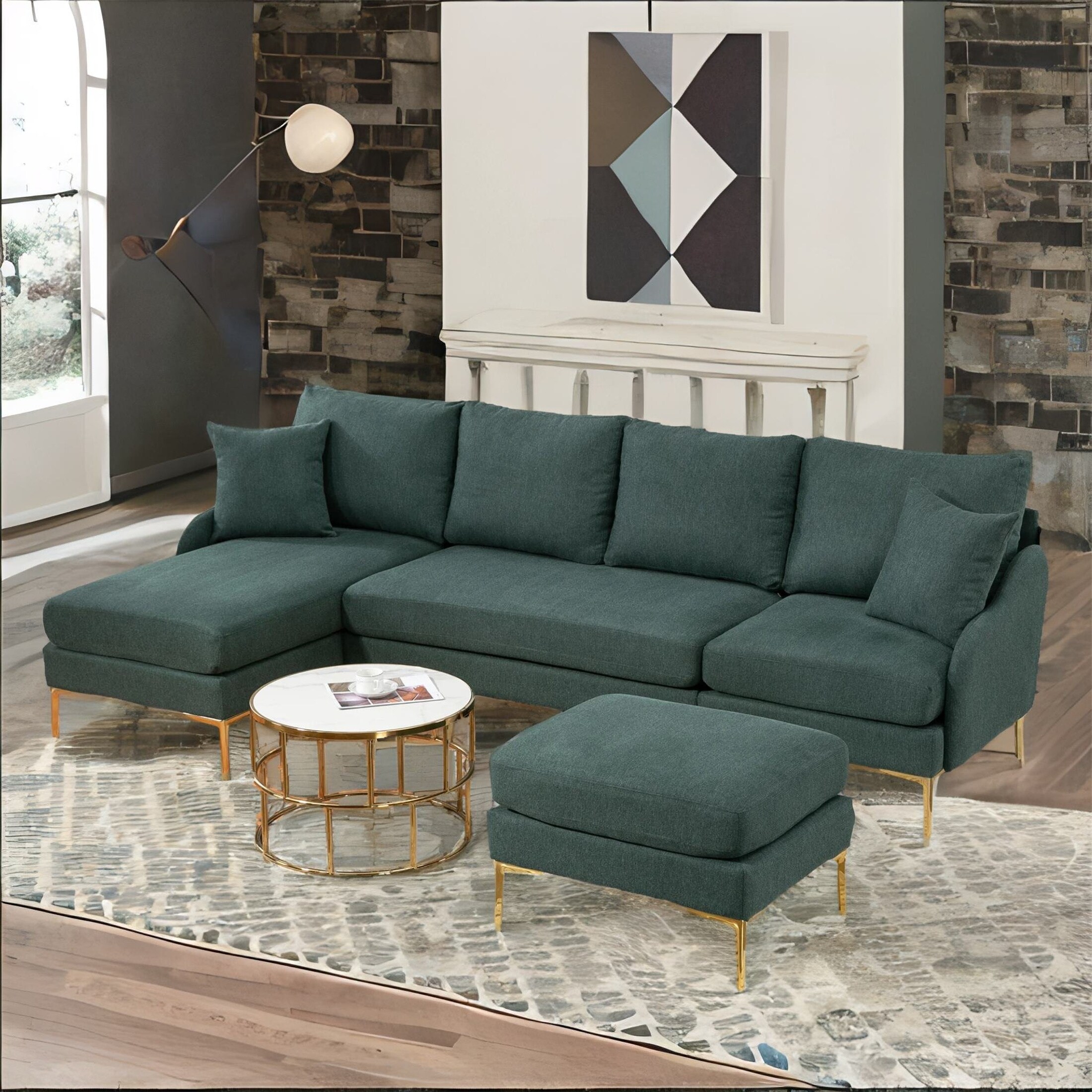 L Shape Sectional Sofa with Right Side Chaise and Ottoman DIY Combination