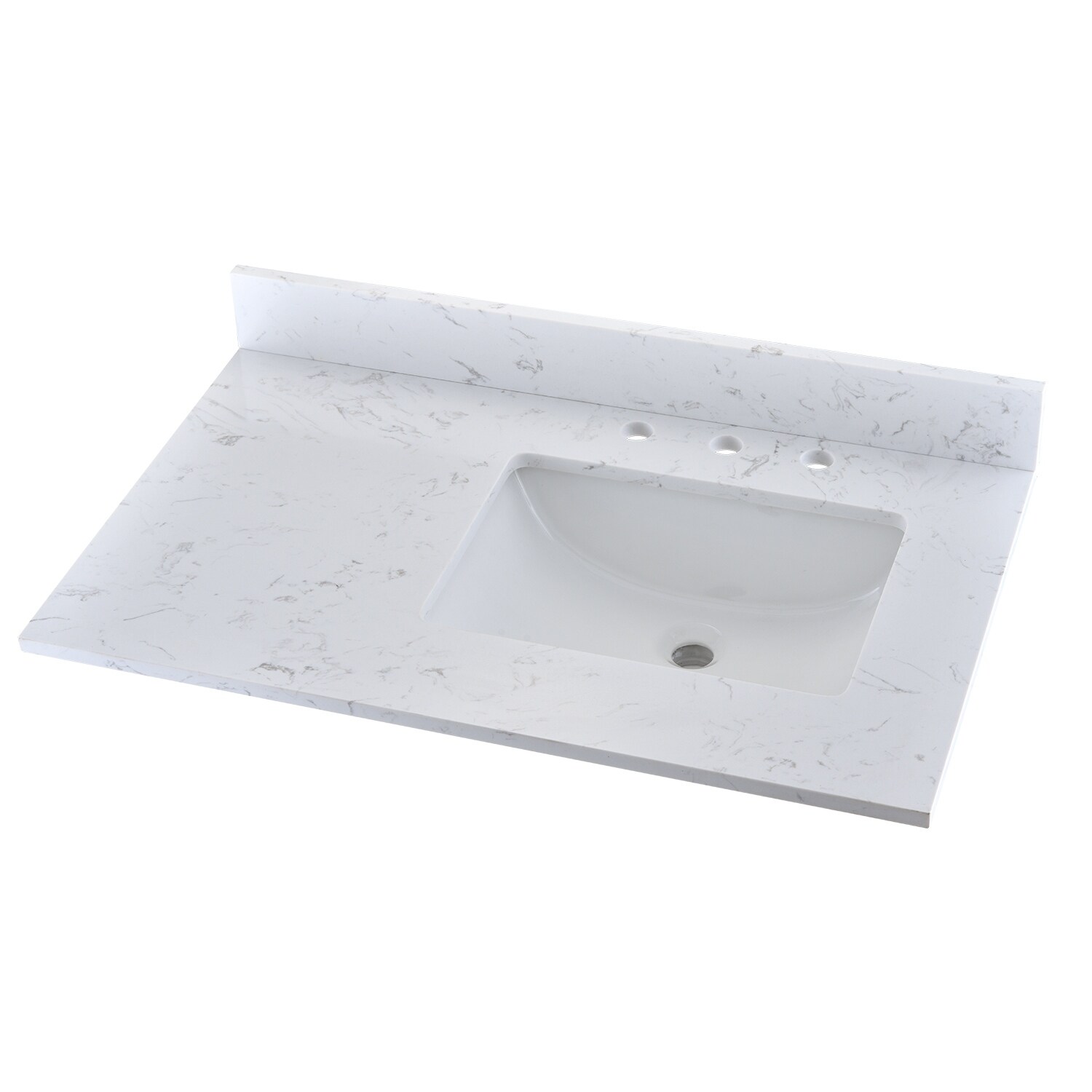 BATHLET 36 inch White Bathroom Vanity Set with Marble Top, Right Sink