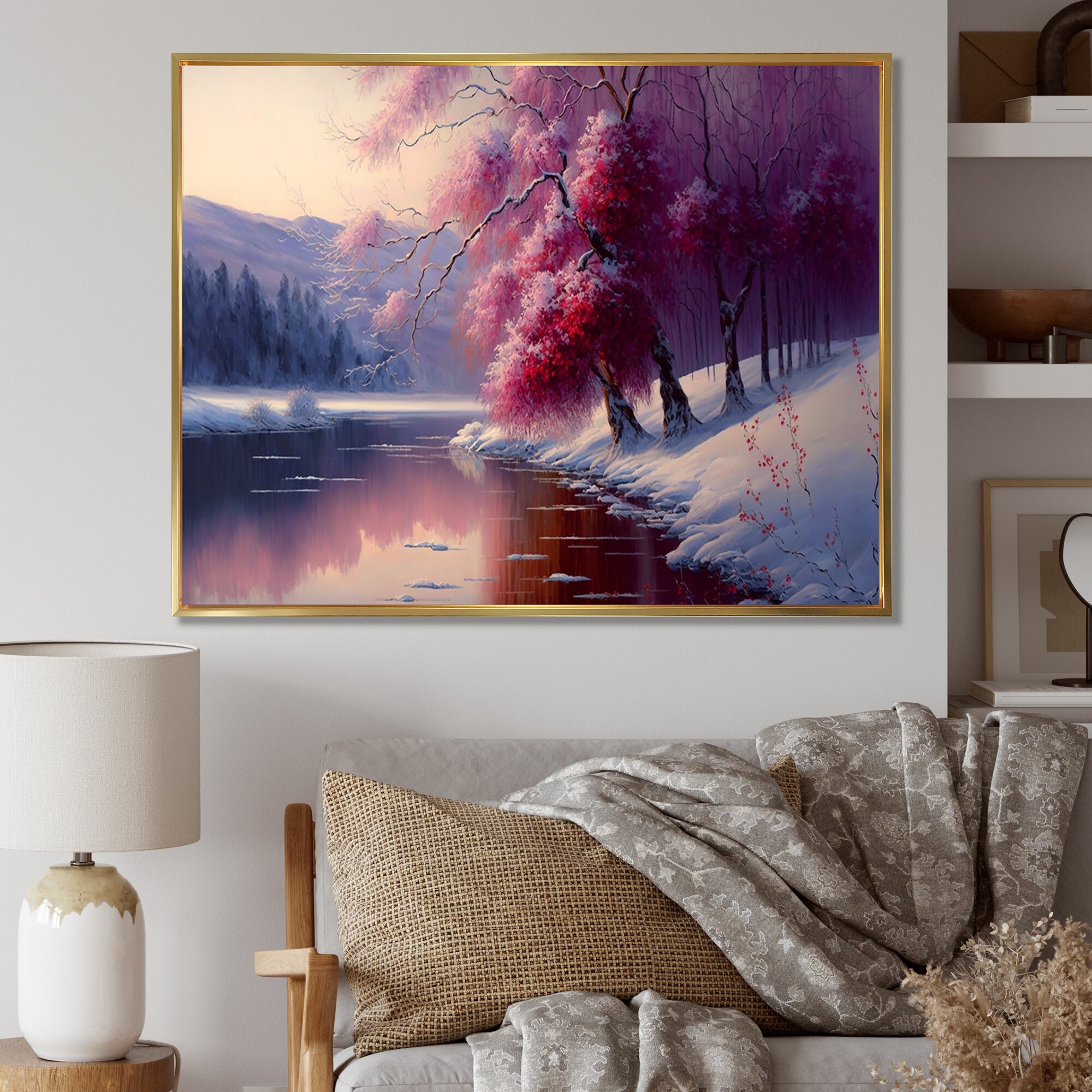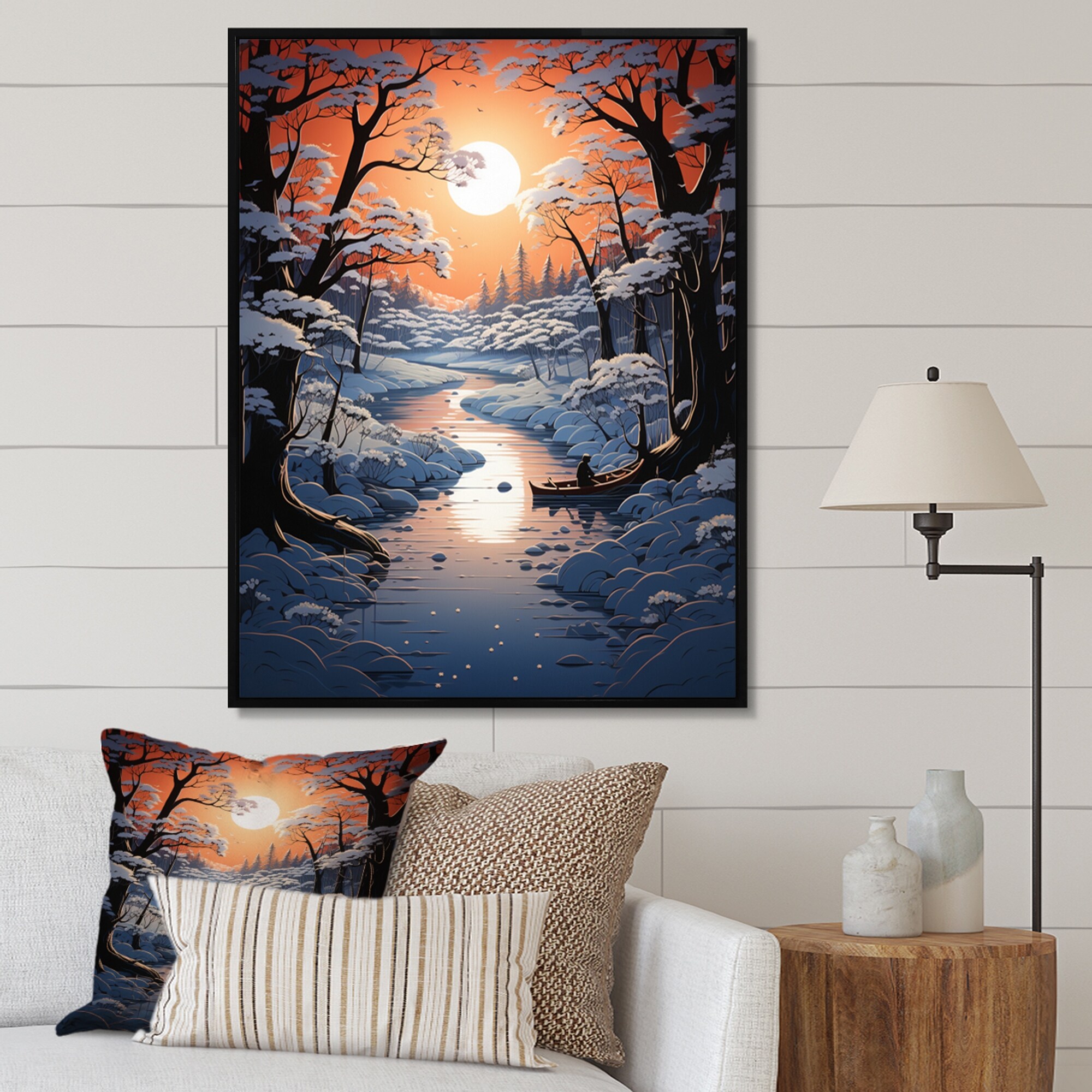 Designart "Winter River Harmony I" Winter Landscape Framed Canvas Art Print