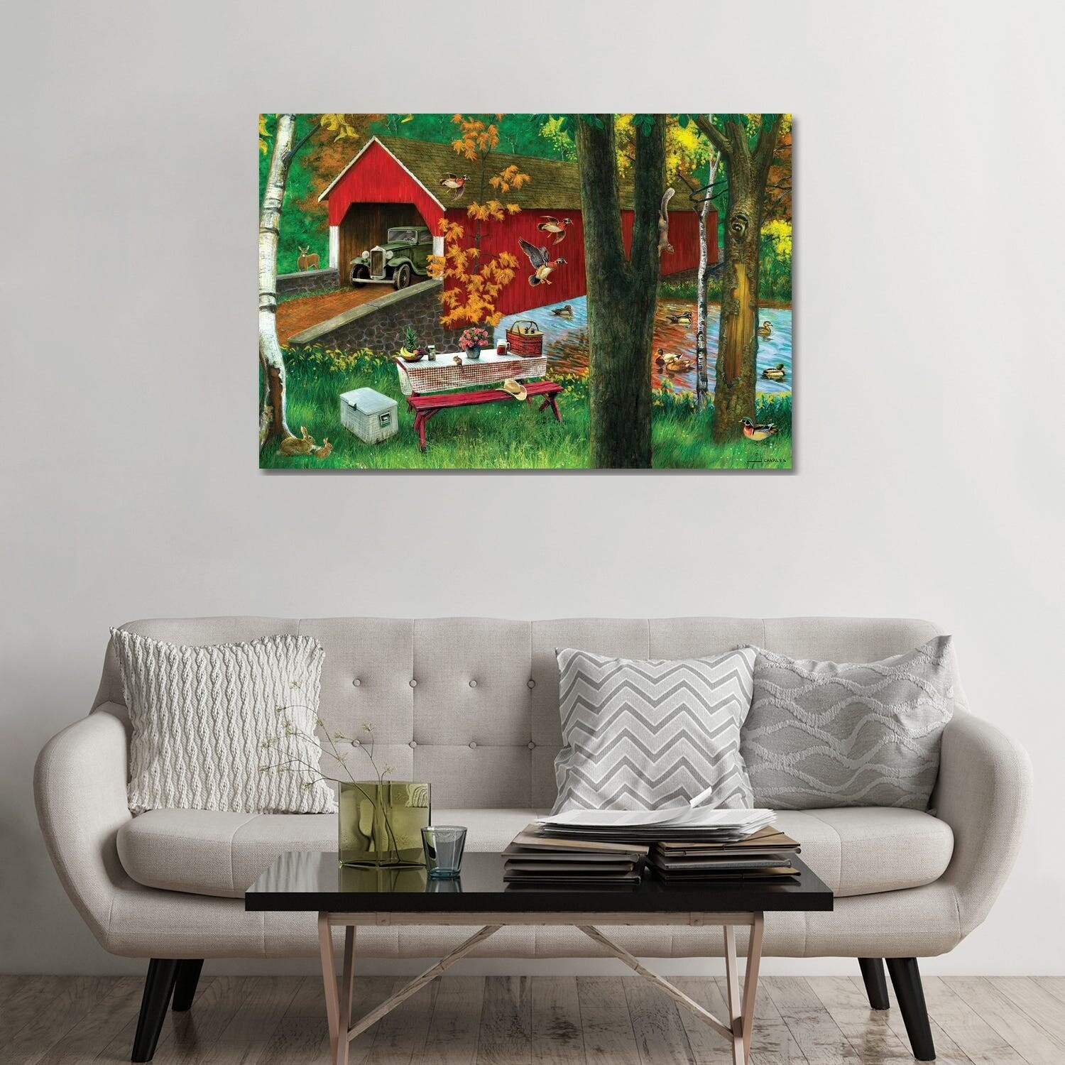 iCanvas "River And Covered Bridge" by J. Charles Canvas Print