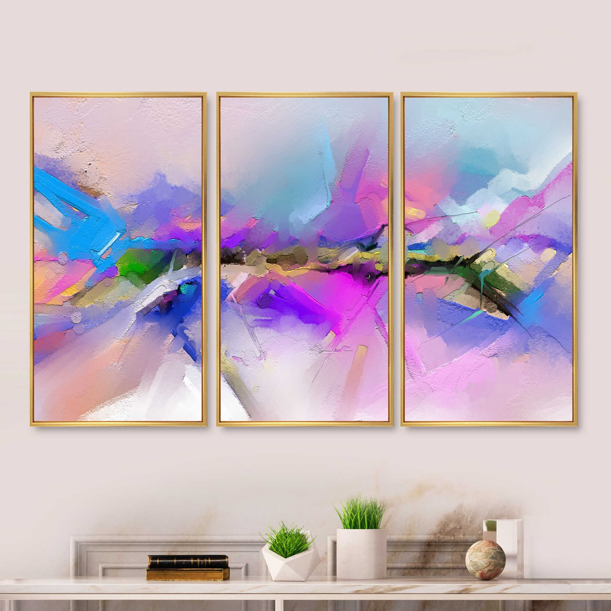 Designart "Black River on Purple And Blue Landscape" Modern & Contemporary Framed Wall Decor Set of 3 - 4 Colors of Frames