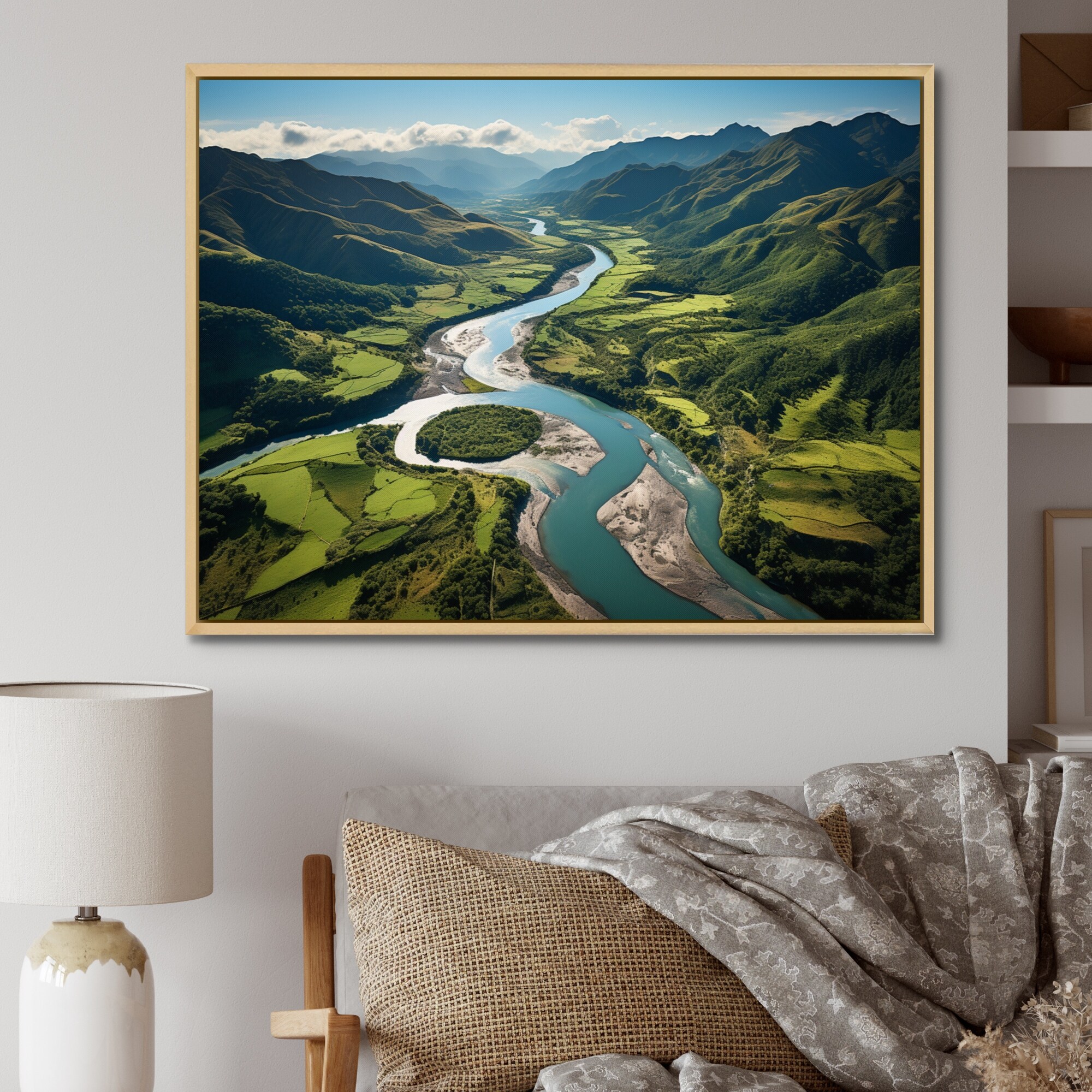 Designart "Meandering River Endless Journey II" Landscape Lake River Framed Canvas Print