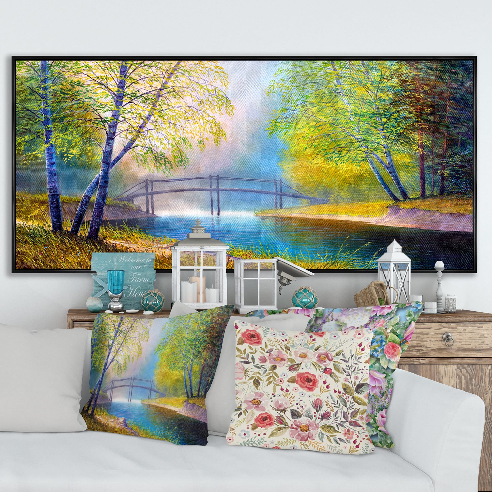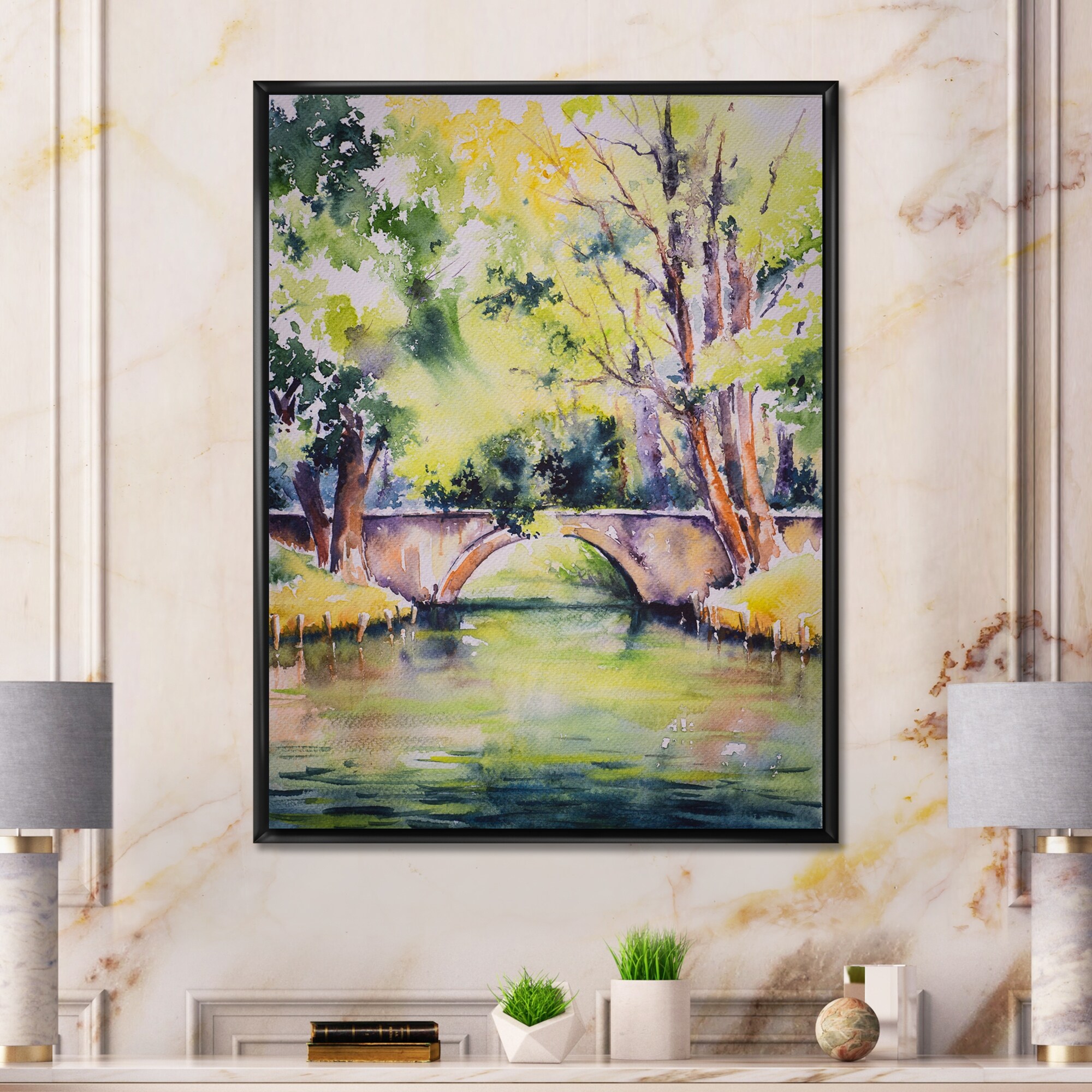 Designart "Bridge Over River in Green Park" Traditional Framed Canvas Wall Art Print