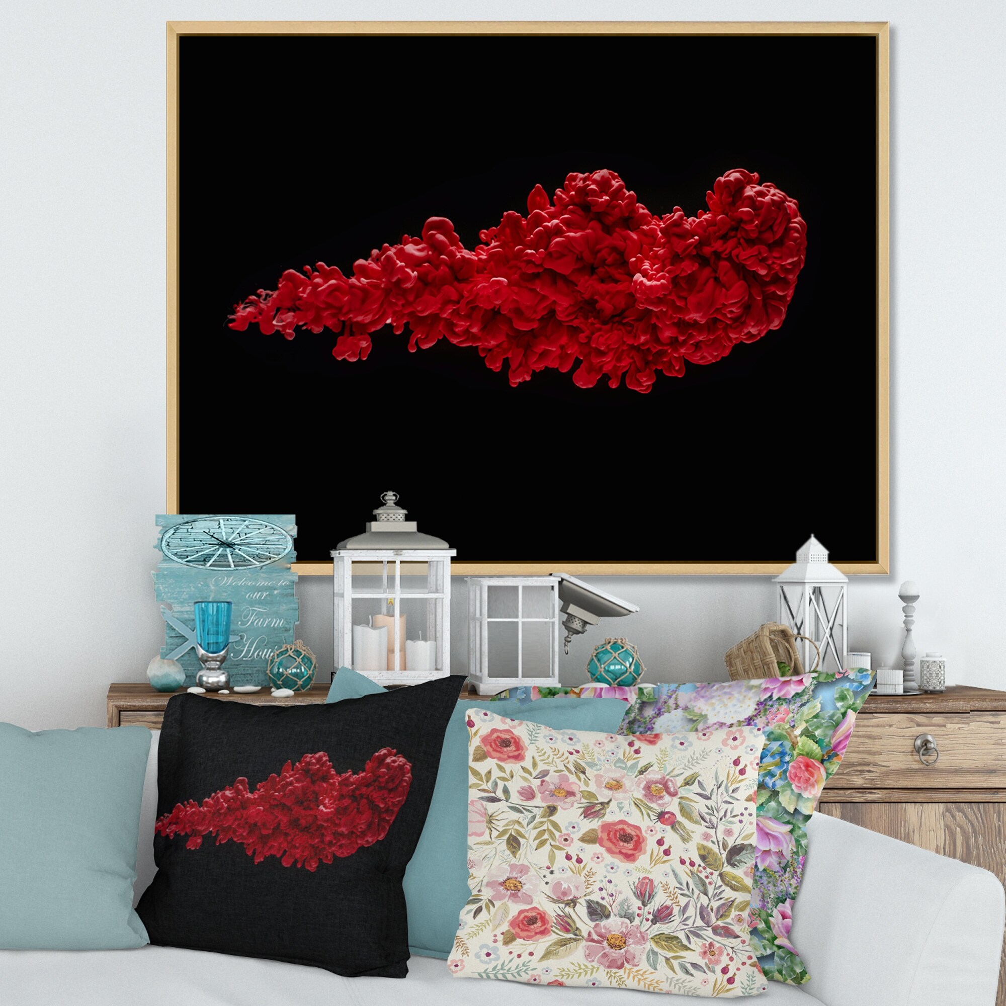 Designart "Red River Or Red Ink Liquid Art" Modern Framed Canvas Wall Art Print
