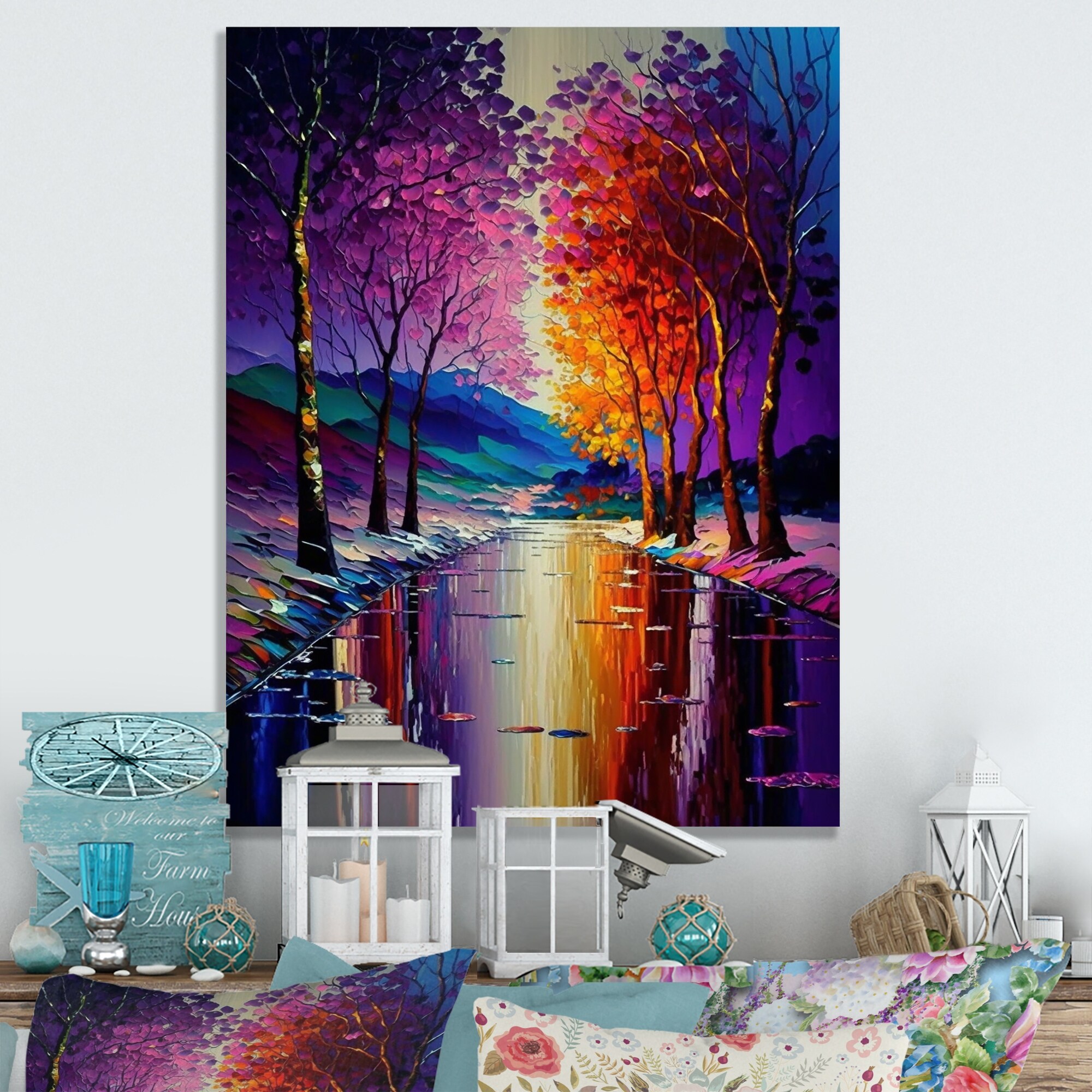 Designart "Colorful Trees At Sunset By the Riverside I" Landscape Forest Canvas Wall Art