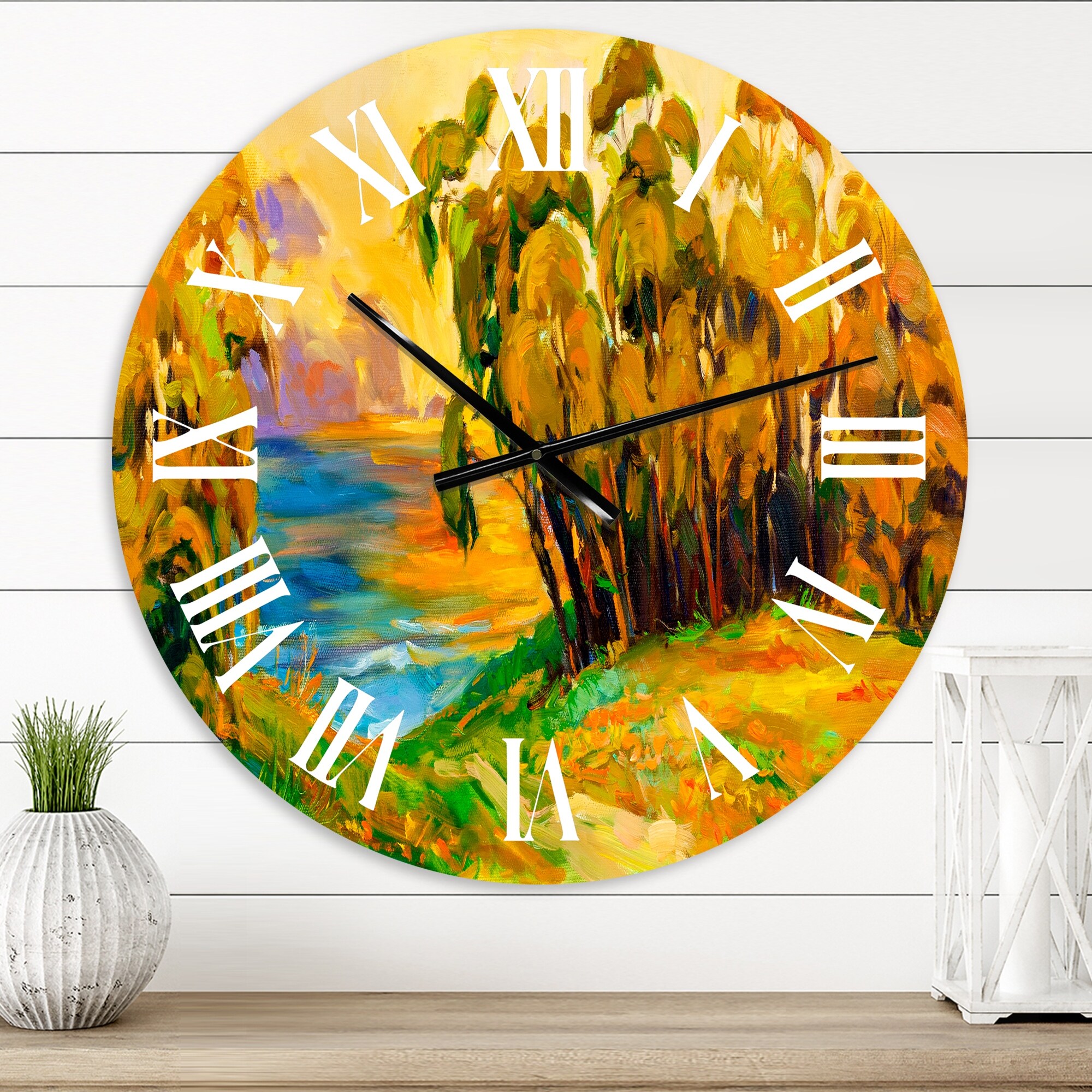 Designart 'Green Trees By the Riverside During Evenign Glow' Traditional Wall Clock Decor