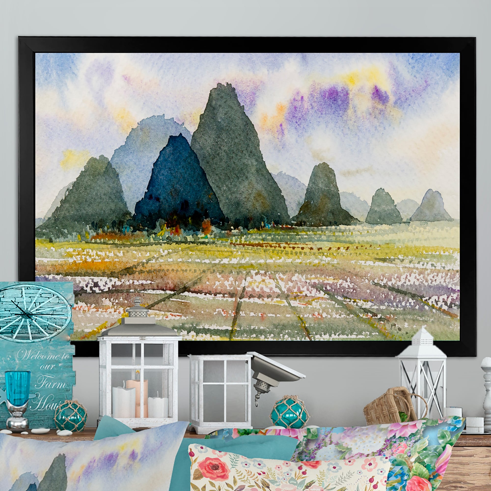 Designart "Mountain Viewed From the Riverside" Traditional Framed artwork