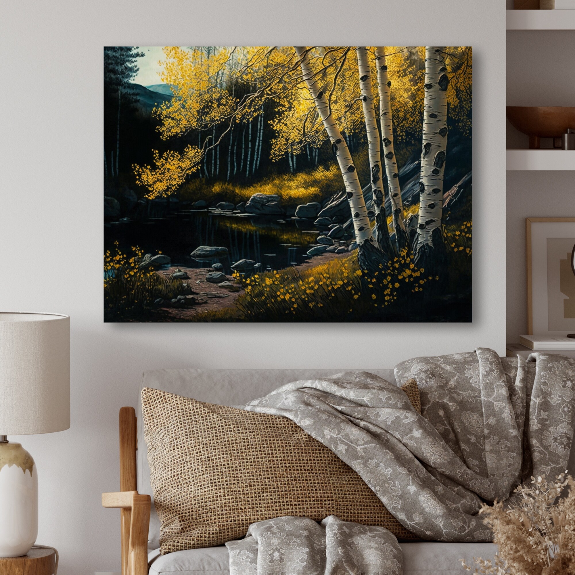 Designart "Yellow Birches By the Riverside I" Landscape Forest Canvas Wall Art