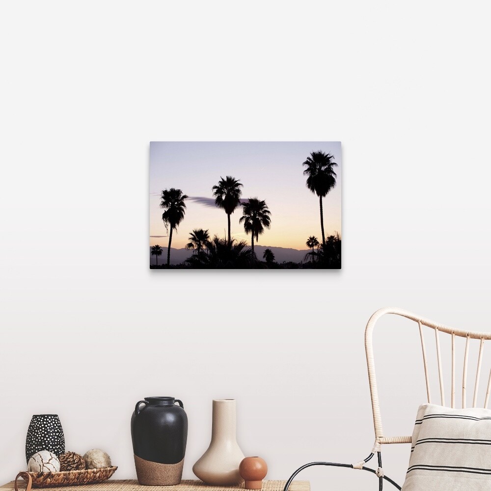 "Silhouette of palm trees at dusk, Palm Springs, Riverside County, California" Canvas Wall Art
