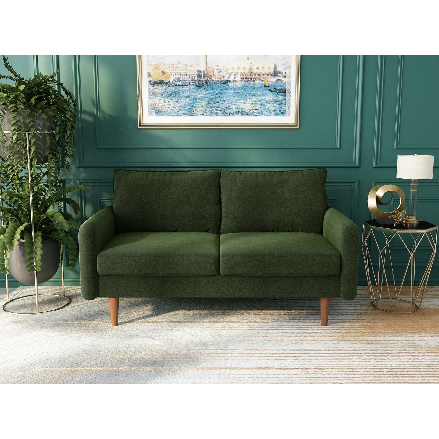 57.72 Inch Modern Loveseat Sofa Plush Foam Cushions Couch Tufted Back Sofa for Living Room with 2 Pillow and Wood Legs Sofa