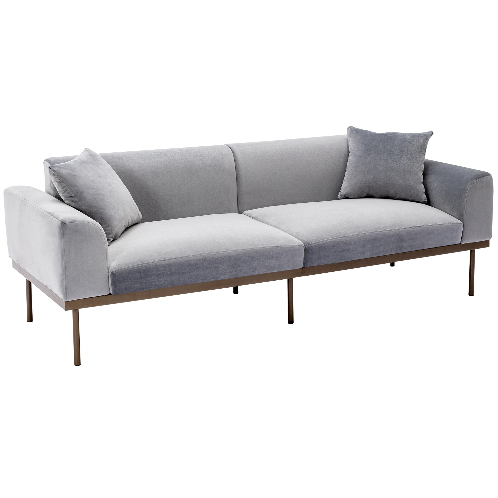 3 seater Velvet Upholstered Sofa for Living Room Modern Tufted Back Long Couch with 2 Pillows and Golden Metal Legs