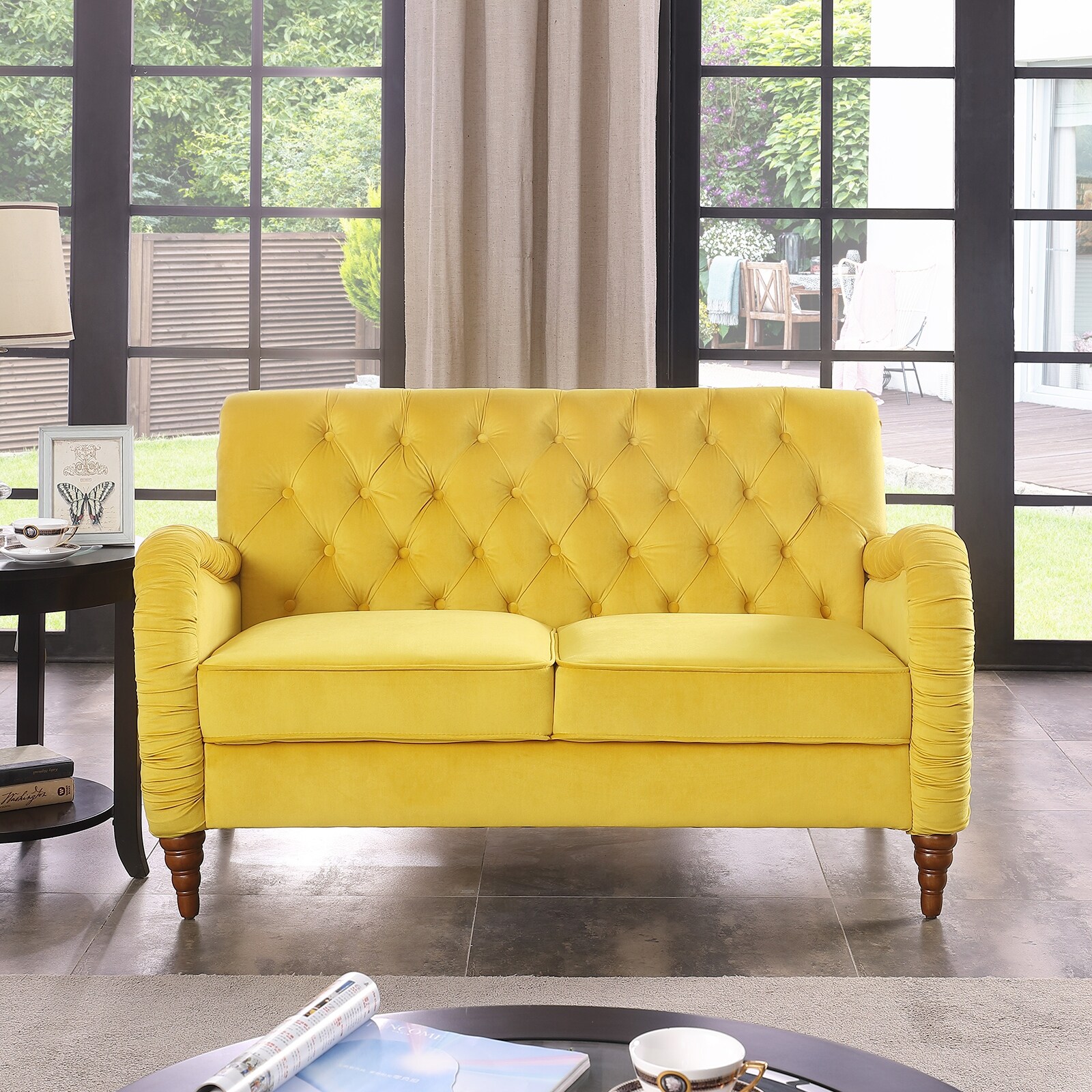 Velvet Upholstered Loveseat Modern Living Room Button Backrest 2-Seater Sofa
